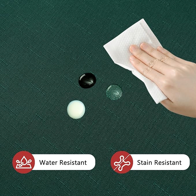 Fabric Green Christmas Rectangle Tablecloth, Faux Linen Textured Table Cloth for 6ft Rectangular Table, Water Resistant & Washable for Dinig Party Holiday Decoration, 60 x 84 Inch