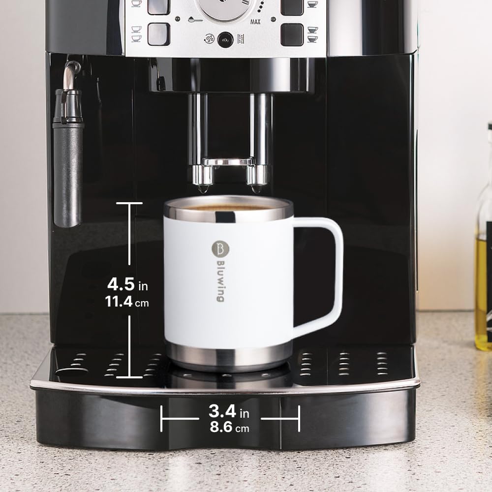 Insulated Coffee Mug with Lid, 12 oz Travel Coffee mug with handle Double Wall Stainless Steel Travel Tumbler Cup, Spill Proof (White)