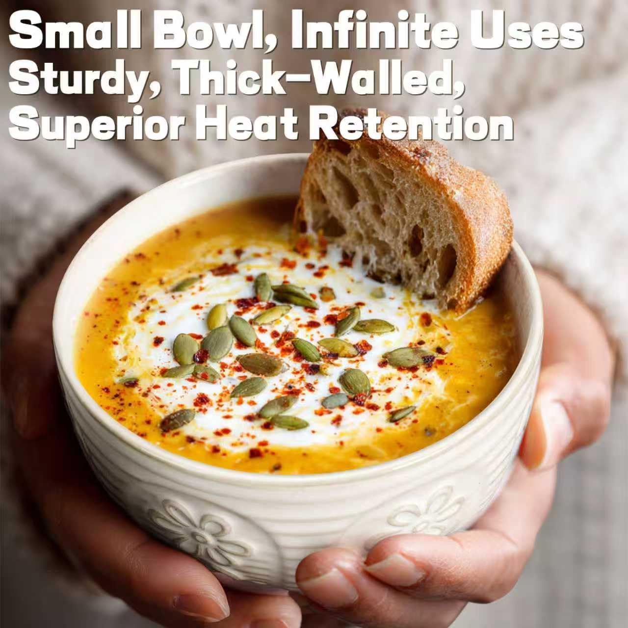 • Elegant Embossed Design & Multi-Purpose Use: Adorn your table with these artfully embossed, white ceramic bowls, perfect for serving soup, ice cream, desserts, or side dishes. Each 12 oz small bowls measures 4.5 x 2.5 inches, making it ideal for portion control and small servings.