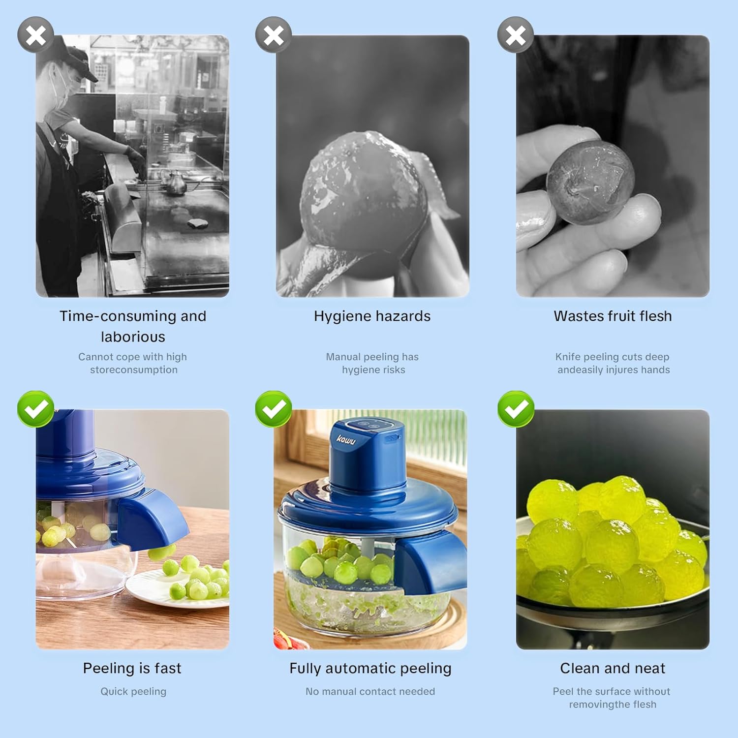 Kawu Electric Grape Peeling Machine, Portable Automatic Garlic Peeler Machine with 5 Blades, USB Rechargeable, Smart Fruit Machine Remover Tool for Small Fruits, Effortless Peeling for Home Kitchen