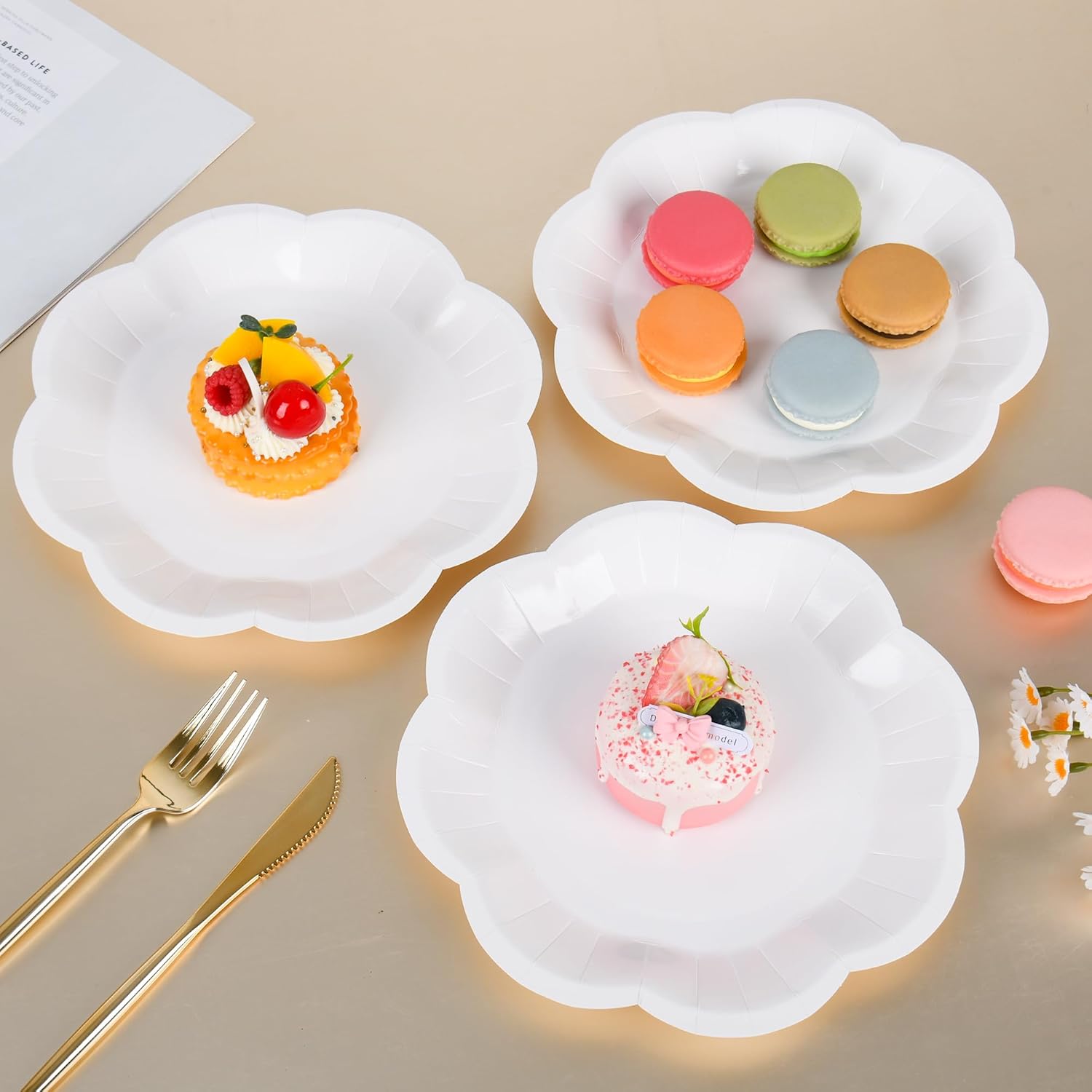 • Package Include: You will receive 30 pieces 9 inch scalloped white paper plates, which are made of quality thickened paper and are not easy to break. very perfect for serving dessert, cake, cookie, fries or any food you like