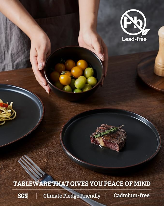 • 【FOOD GRADE NATURAL GLAZE】All of our dinnerware sets are made of food grade glaze. You can safely use them to serve steaks, salads or desserts, no need to worry about any harmful substances leaching into the food.