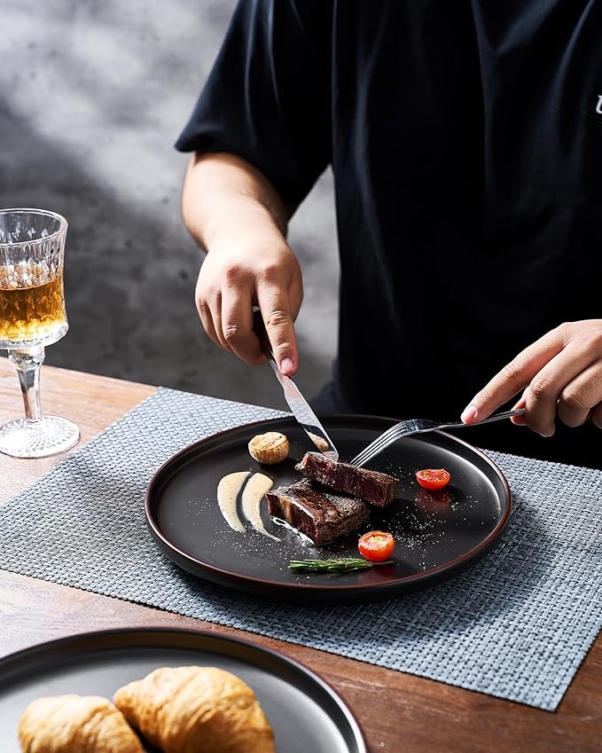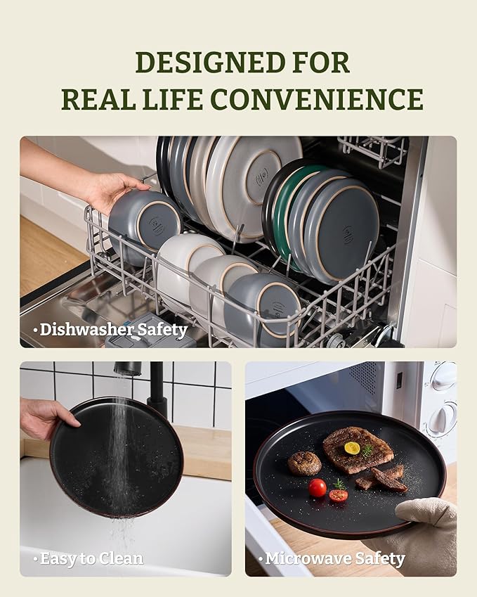 • 【FOOD GRADE NATURAL GLAZE】All of our dinnerware sets are made of food grade glaze. You can safely use them to serve steaks, salads or desserts, no need to worry about any harmful substances leaching into the food.