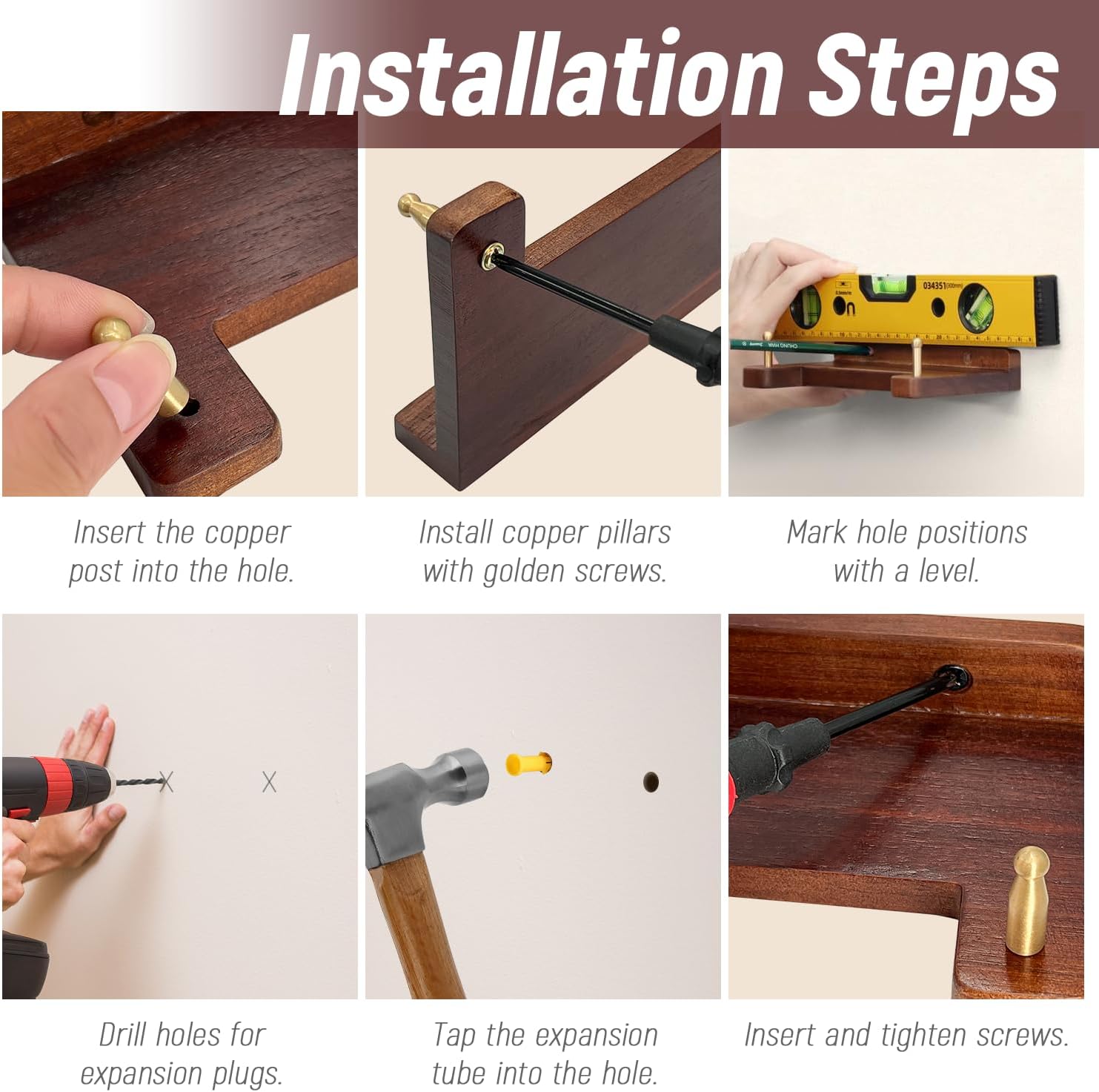 • Simple & Sturdy Installation: Easy assembly requires just attaching brass pillars, drilling two holes for included expansion plugs, and tightening screws for a safe, reliable mount on your wall.