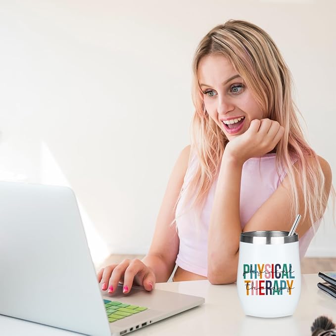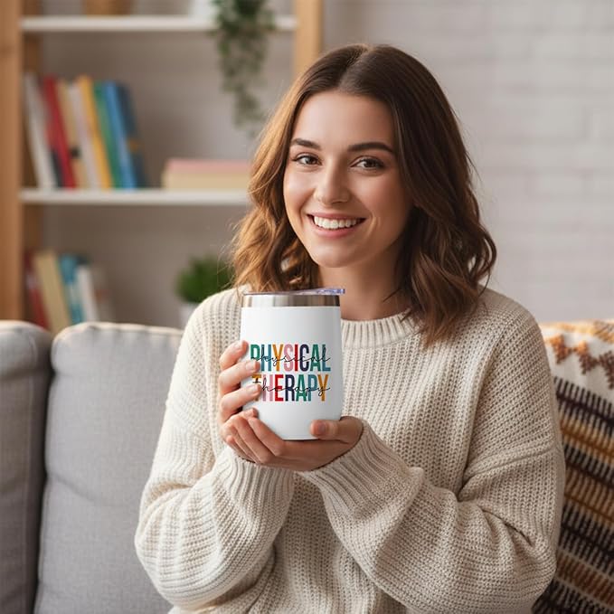 Funny Physical Therapy Physical Therapist Gifts Wine Tumbler Occupational Therapy Gifts for Women Men Doctor Coworker Physiotherapist Assistant Birthday Christmas Insulated Wine Glasses 12 oz Tumbler