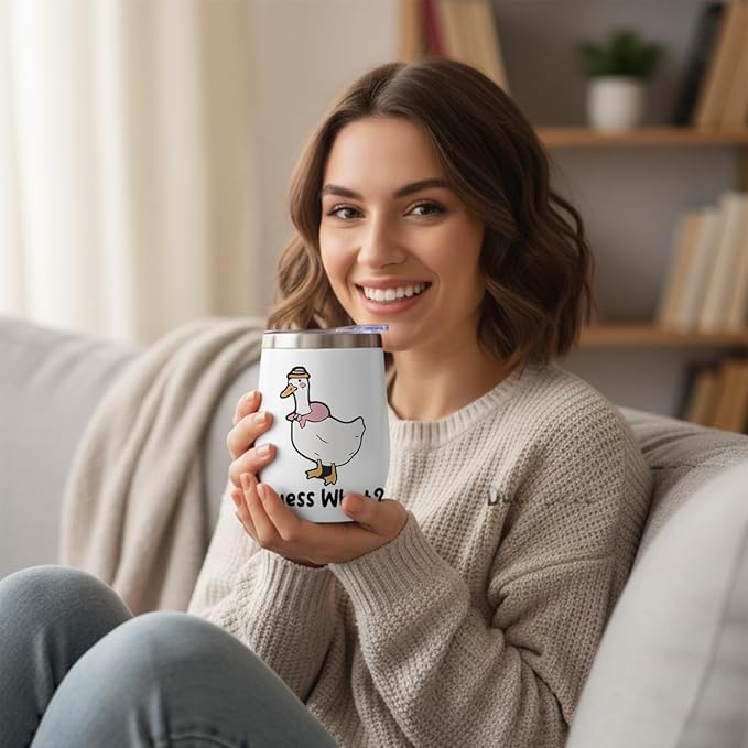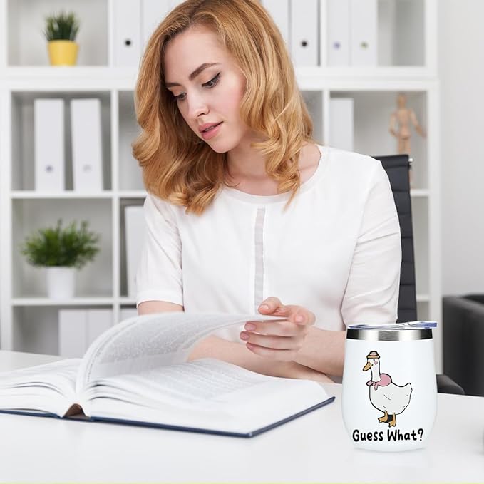 VICBOU Cute Funny 12 oz Tumbler, Wine Tumbler Insulated Wine Glass with Lid, Duck Gifts for Girls Boys Women Men Mom Animal Lovers Duck Supplies Accessories Friendship Appreciation Christmas Birthday