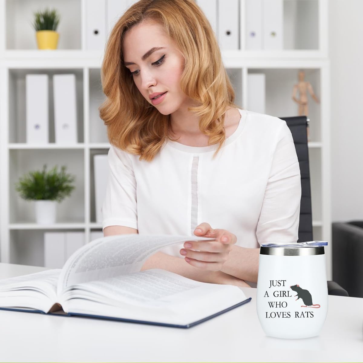 Cute Funny Rats 12 oz Tumbler, Wine Tumbler Insulated Wine Glass with Lid, Rat Gifts for Women Girls Rat Decor Stuff Merch for Friend Daughter Sister Bestie Animal Lover Friendship Christmas Birthday
