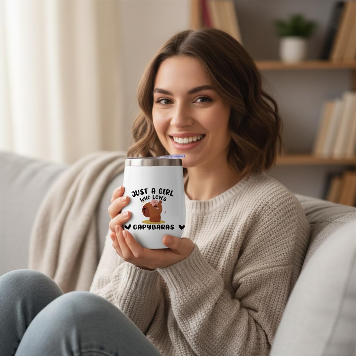 Cute Funny 12 oz Tumbler, Wine Tumbler Insulated Wine Glass with Lid, Capybara Gifts for Women Girls Capybara Decor Stuff for Friend Daughter Sister Bestie Animal Lover Friendship Christmas Birthday