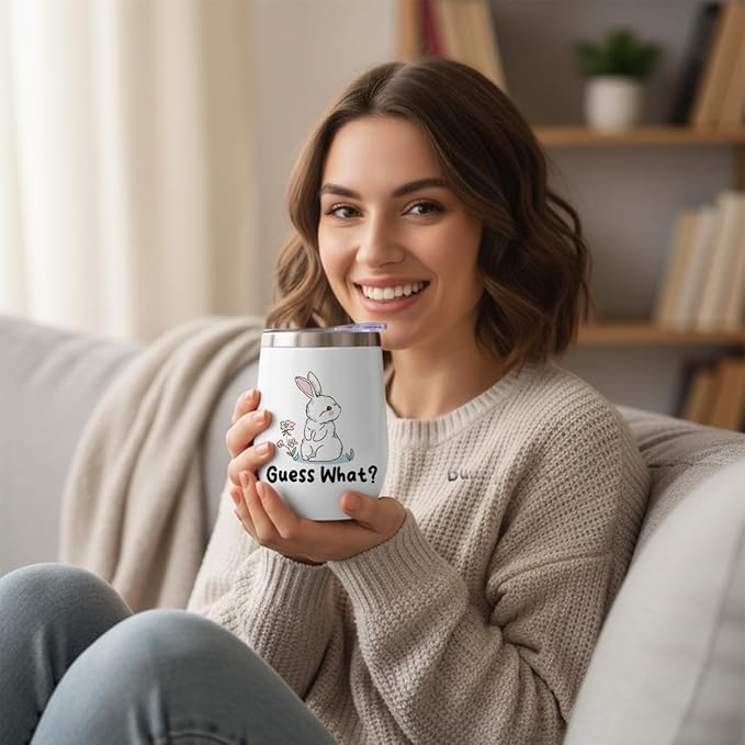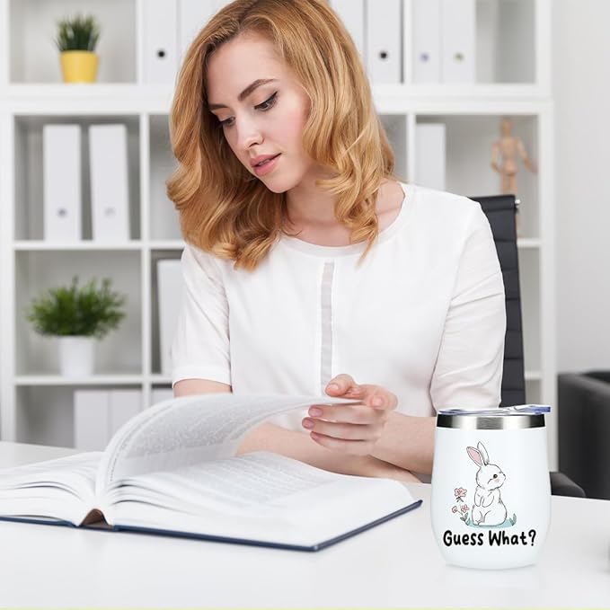 Cute Funny Rabbit 12 oz Tumbler, Wine Tumbler Insulated Wine Glass with Lid, Bunny Gifts Bunny Supplies Accessories for Women Girls Friend Daughter Sister Pet Owner Friendship Christmas Birthday
