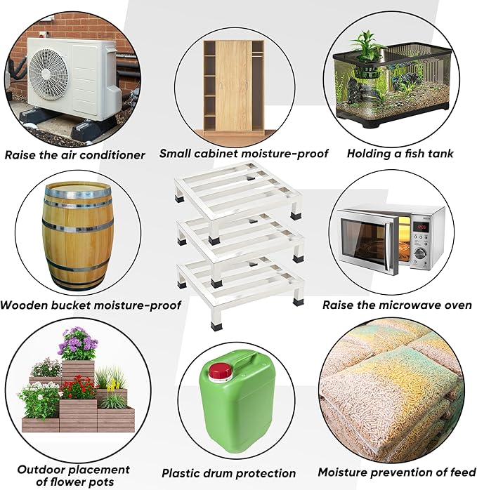 • Worthy dunnage rack: Our product package includes 3 stainless steel dunnage racks;As a food service storage rack, it is very suitable for place grain bags, giant potted or fish tanks, ensuring the isolation of items from the ground