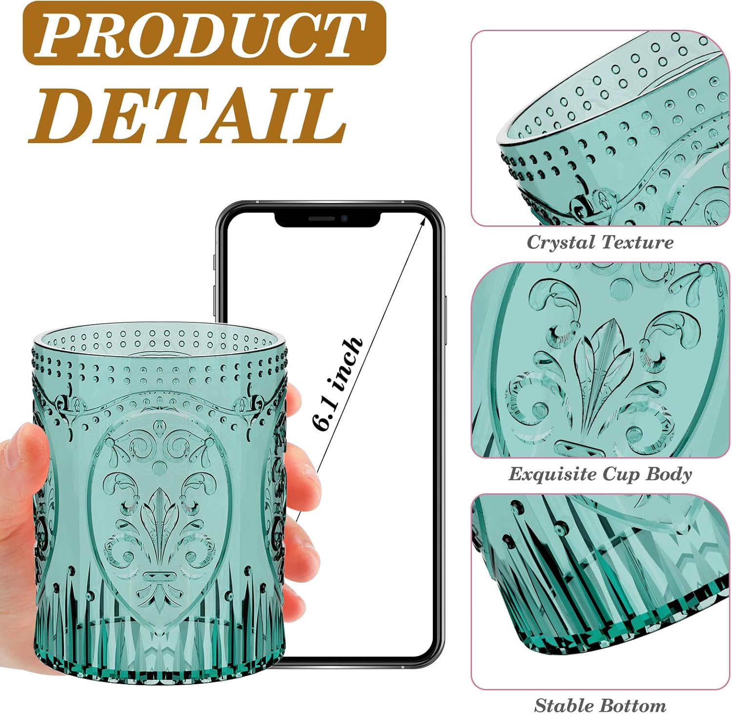 • Quality Material: Made from sturdy plastic, these plastic water goblets combine the look of glass with the safety of plastic. Lightweight yet durable, they're ideal for daily use or parties. Enjoy the beauty of antique plastic cups without the worry of breakage or fragility