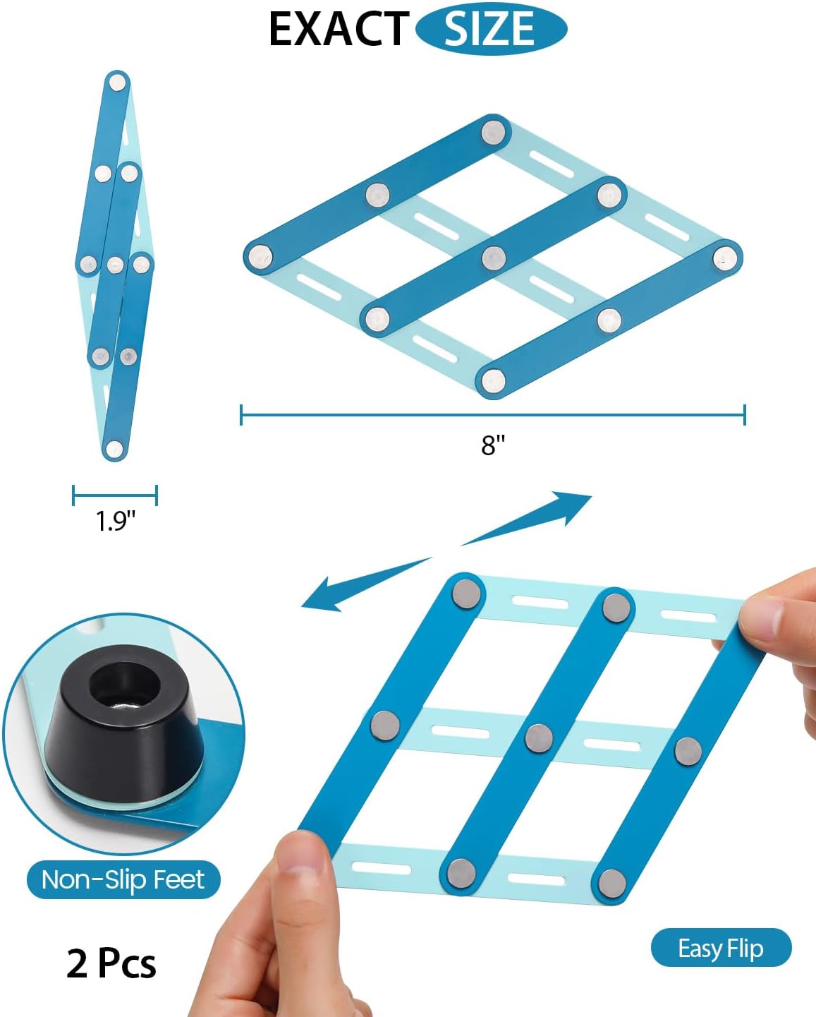 2 Pcs Expandable Trivets for Hot Pots and Pan, Modern Color-Block Kitchen Hot Pads, Small Pot Mat, Flexible & Adjustable, Stores Neatly,Heat-Resistant Stainless Steel Trivets for Kitchen