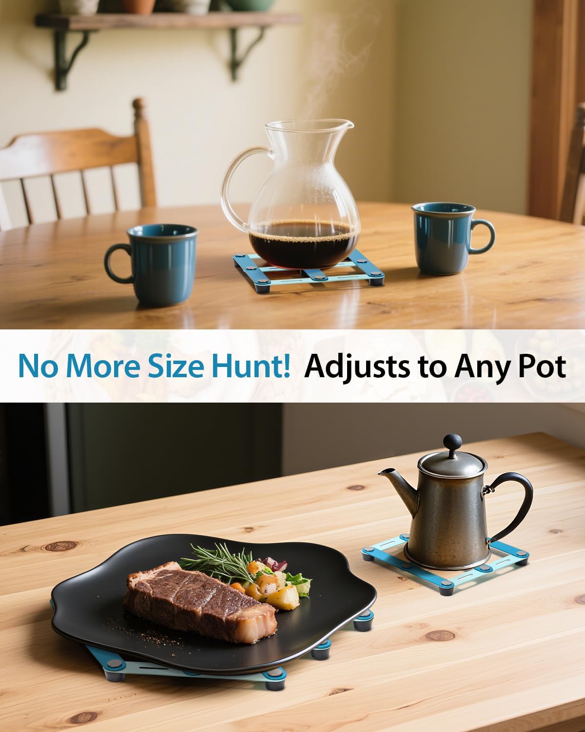 • Flexible & Adjustable Trivet: This stainless steel trivet features a stretchable design! Easily adjust its size to fit anything from your coffee mug to a large baking sheet or serving platter. Stores neatly – hang it up or fold it compactly