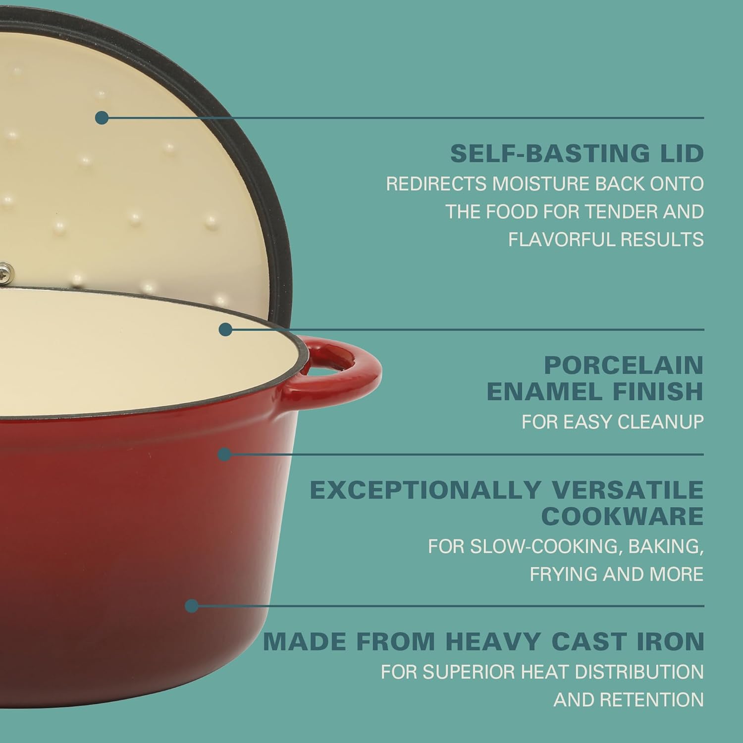 Gibson Home Addlestone 7 Qt Enameled Cast Iron Dutch Oven Pot with Lid – Round, Oven Safe to 500°F, Ideal for Bread Baking & Stews - Gradient Red