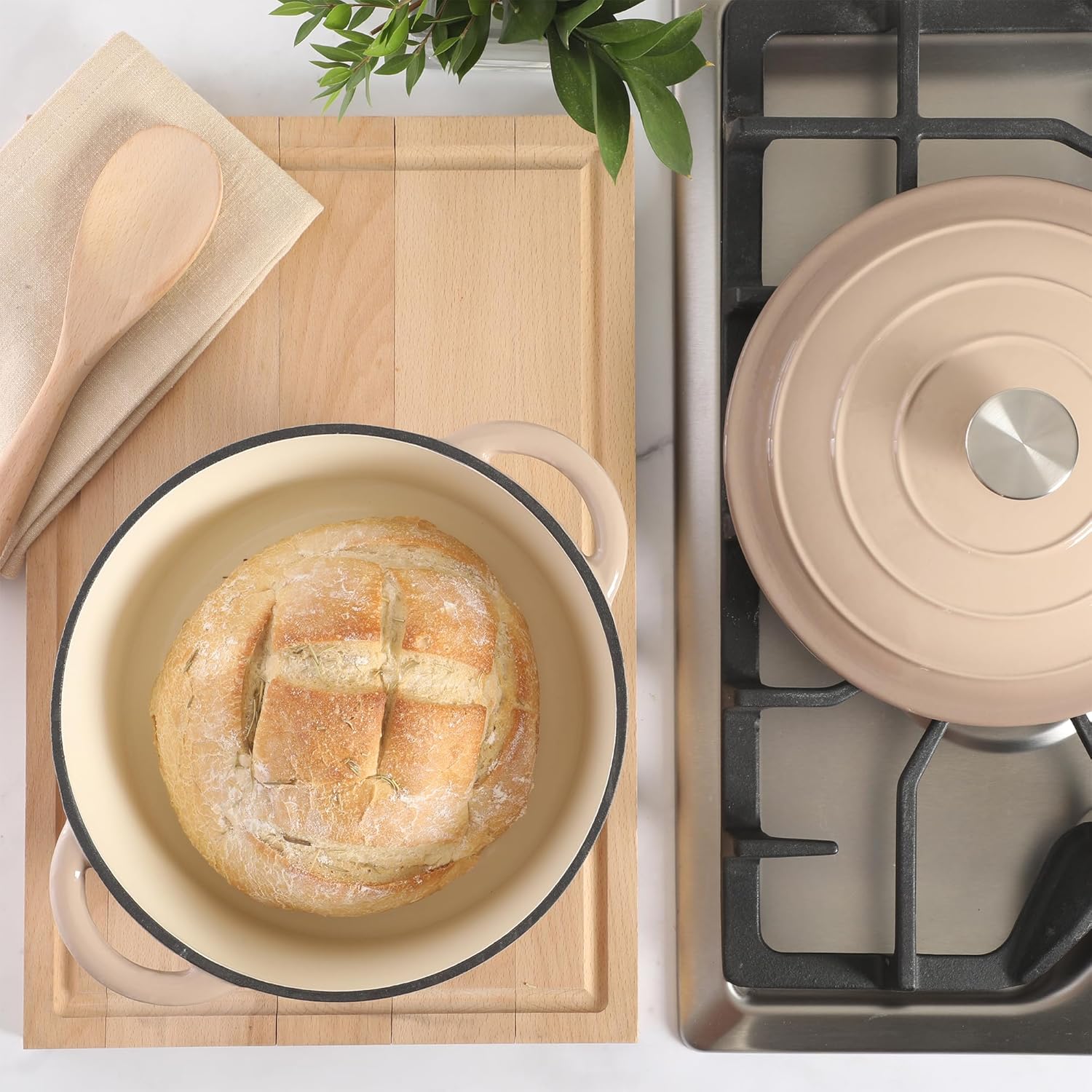 Gibson Home Addlestone 5 Qt Enameled Cast Iron Dutch Oven Pot with Lid – Round, Oven Safe to 500°F, Ideal for Bread Baking & Stews - Gradient Taupe