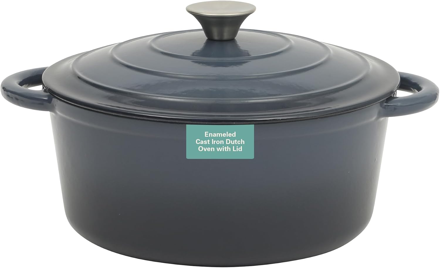 Gibson Home Addlestone 5 Qt Enameled Cast Iron Dutch Oven Pot with Lid – Round, Oven Safe to 500°F, Ideal for Bread Baking & Stews - Gradient Navy Blue