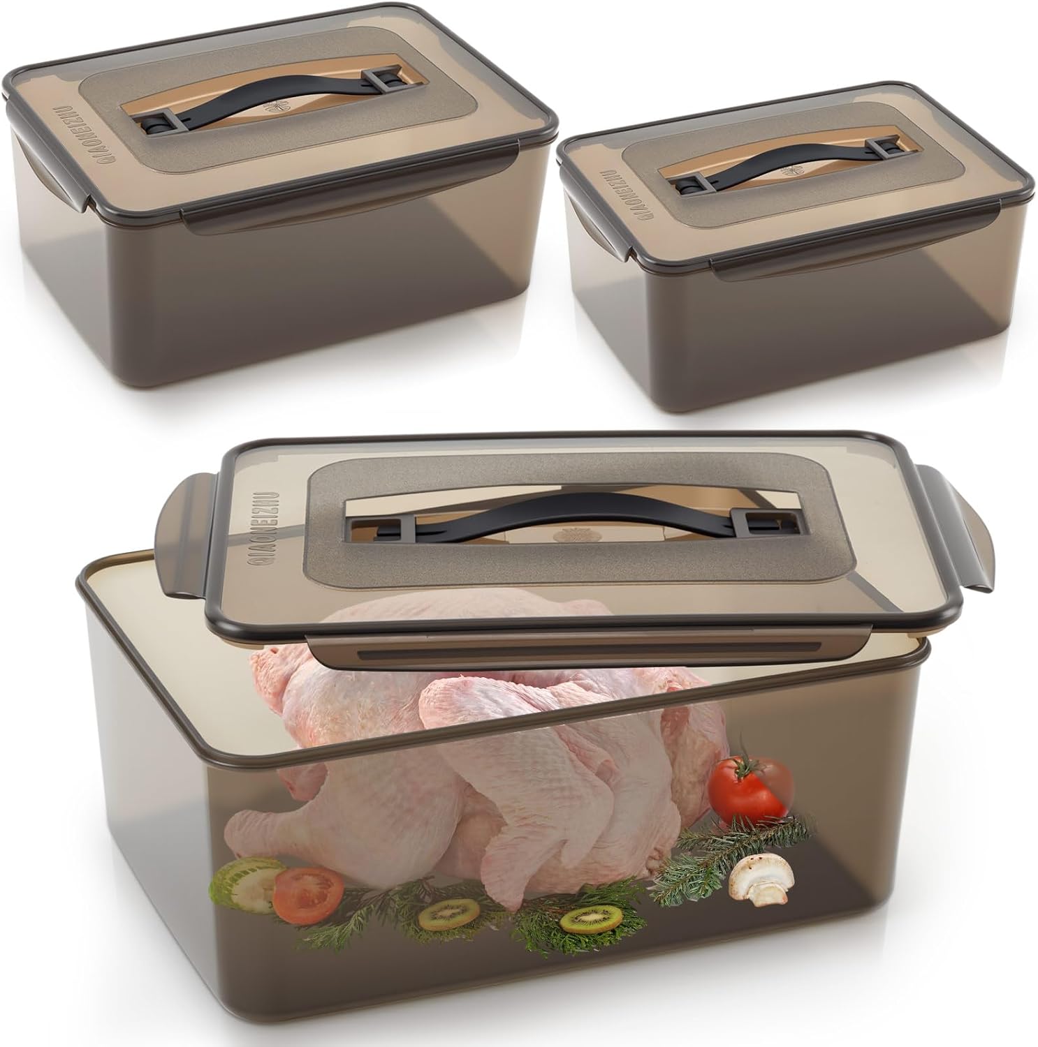 • Visibility and Portable: the translucent black body lets you monitor liquid levels without opening the lid; Designed with user comfort in mind, these containers come with a handle for easy carrying; Suitable for both indoor kitchen prep and outdoor grilling adventures, they're your good solution for any marinating task