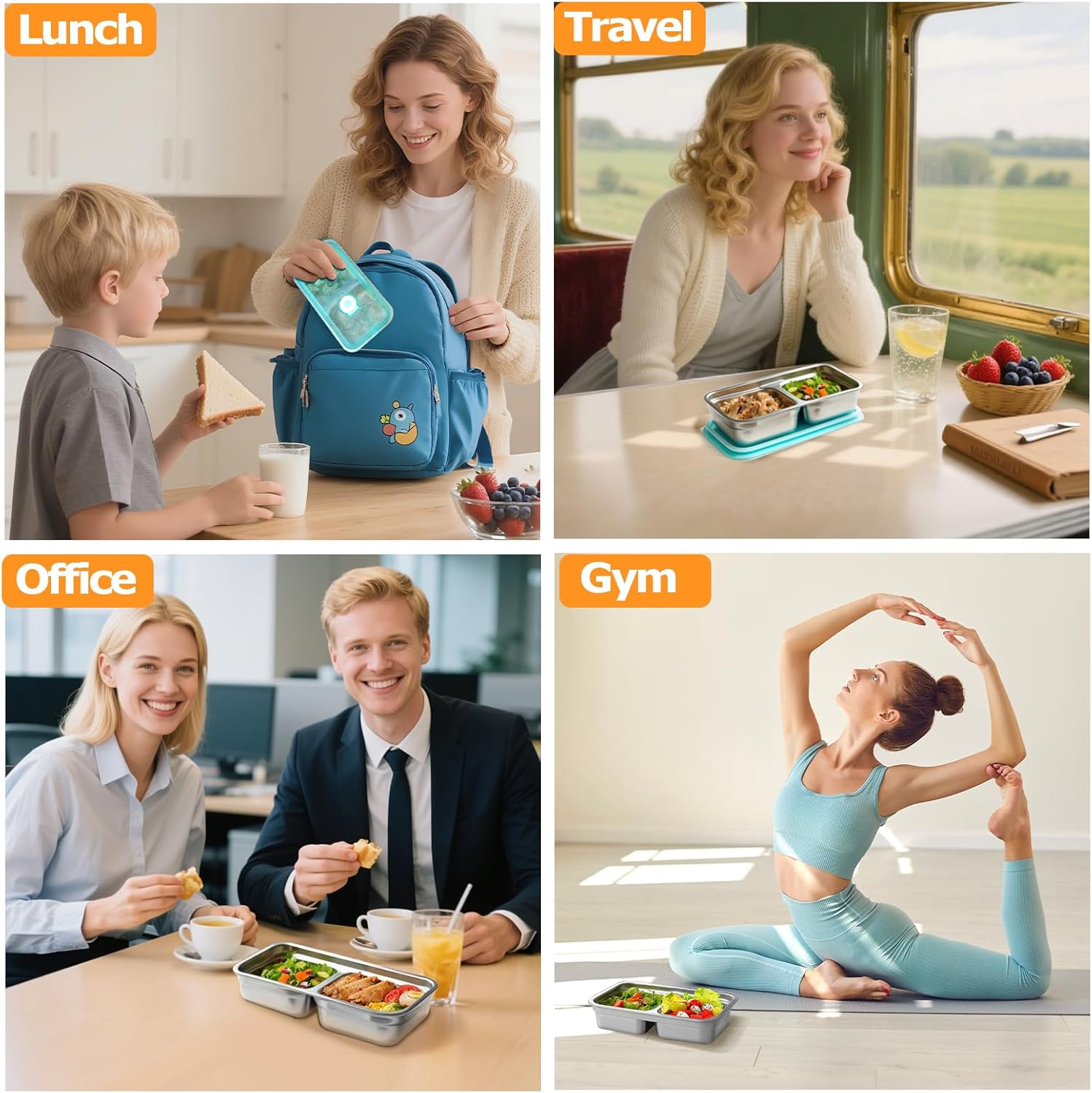 • Versatile for Any Occasion: Ideal for lunches, office snacks, picnics, travel and road trips. The stainless steel build offers a safer, healthier option for everyday meals and on-the-go eating.