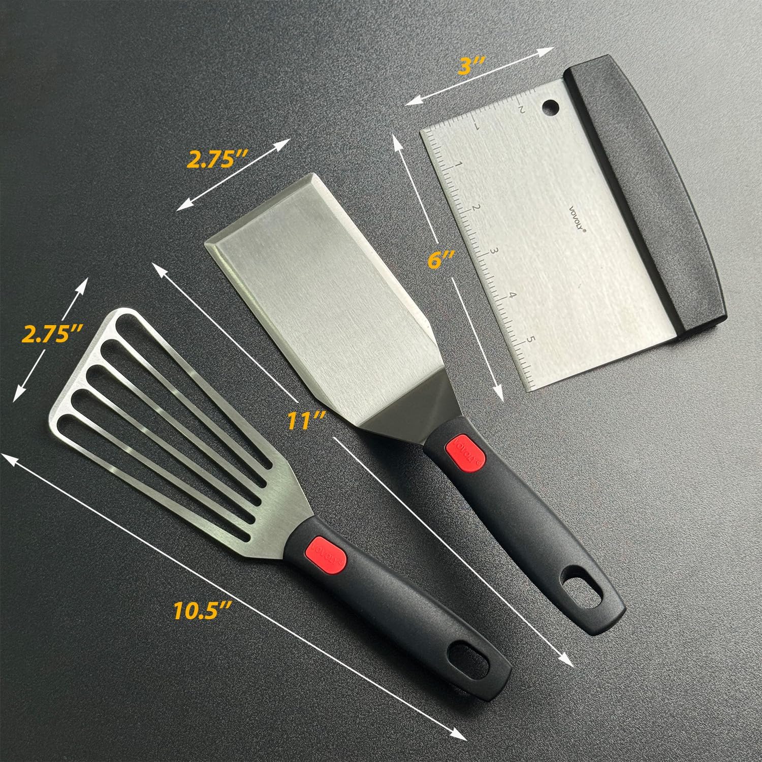 Stainless Steel Spatula Set with Heat Resistant Silicone Handle, VOVOLY Metal Spatulas For Kitchen Use, Thickened Smash Burger Spatula, Fish Flipper, Bench Scraper