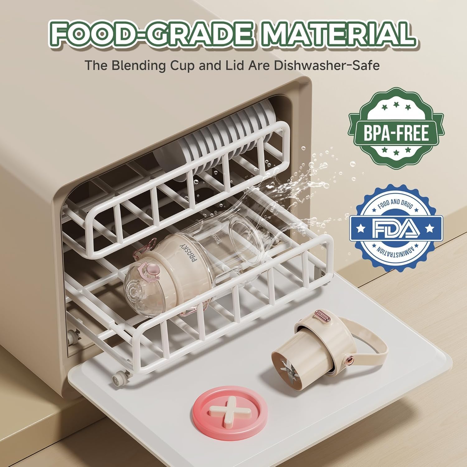 • [BPA-free, Easy to Clean] Our blender juicer is made of BPA-free materials, ensuring healthy drinking. The 304 stainless steel blade, 7.4 voltage rating, features high-speed spinning performance, and its easy-to-remove and clean design makes maintenance a breeze. The blade assembly can be rinsed directly under the tap and the container can be washed in the dishwasher. (Do not immerse the motor in water)
