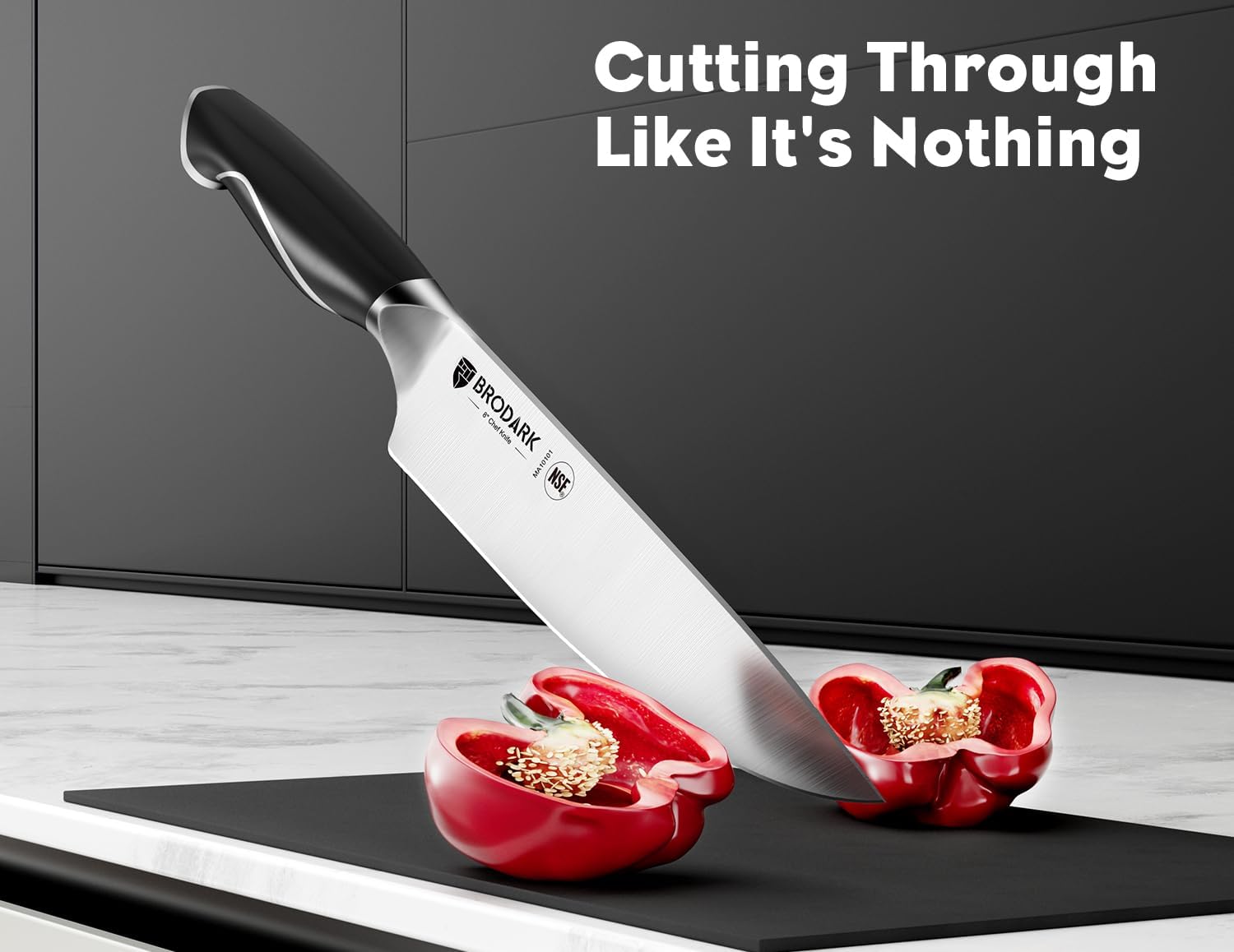 • OPERATE AS YOU WISH: Balance point design with double bolsters-natural comfort and operability. End steel pommel design for anti slip out of the hand. NSF certified for secure use. BRODARK dedicated to bring you the most satisfying knives, letting you show your talents in kitchen.