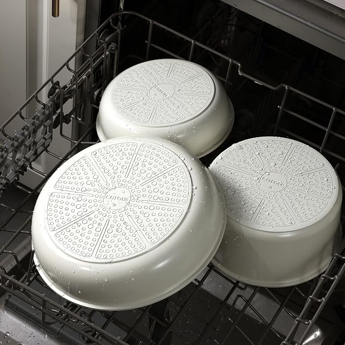 • 【Superior Nonstick Performance】Carote ceramic nonstick pots and pans set is perfect for everyday meals, providing superior nonstick performance with 100% PFOA, PFAS-free and non-toxic properties. Enjoy healthier cooking with less oil intake
