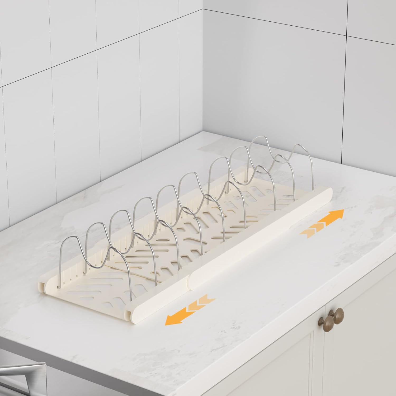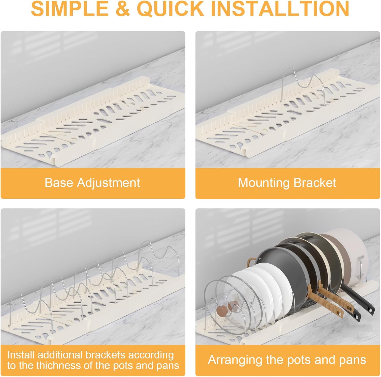 • 【Adjustable Spacing Capacity】The pots and pans organizer is expandable on both sides.Extendable Pot Lid organizers inside cabinet expands from 13.58-22.24 inch wide to maximize you can set this pan organizers inside cabinet to the size you want space in any drawers or cabinets.