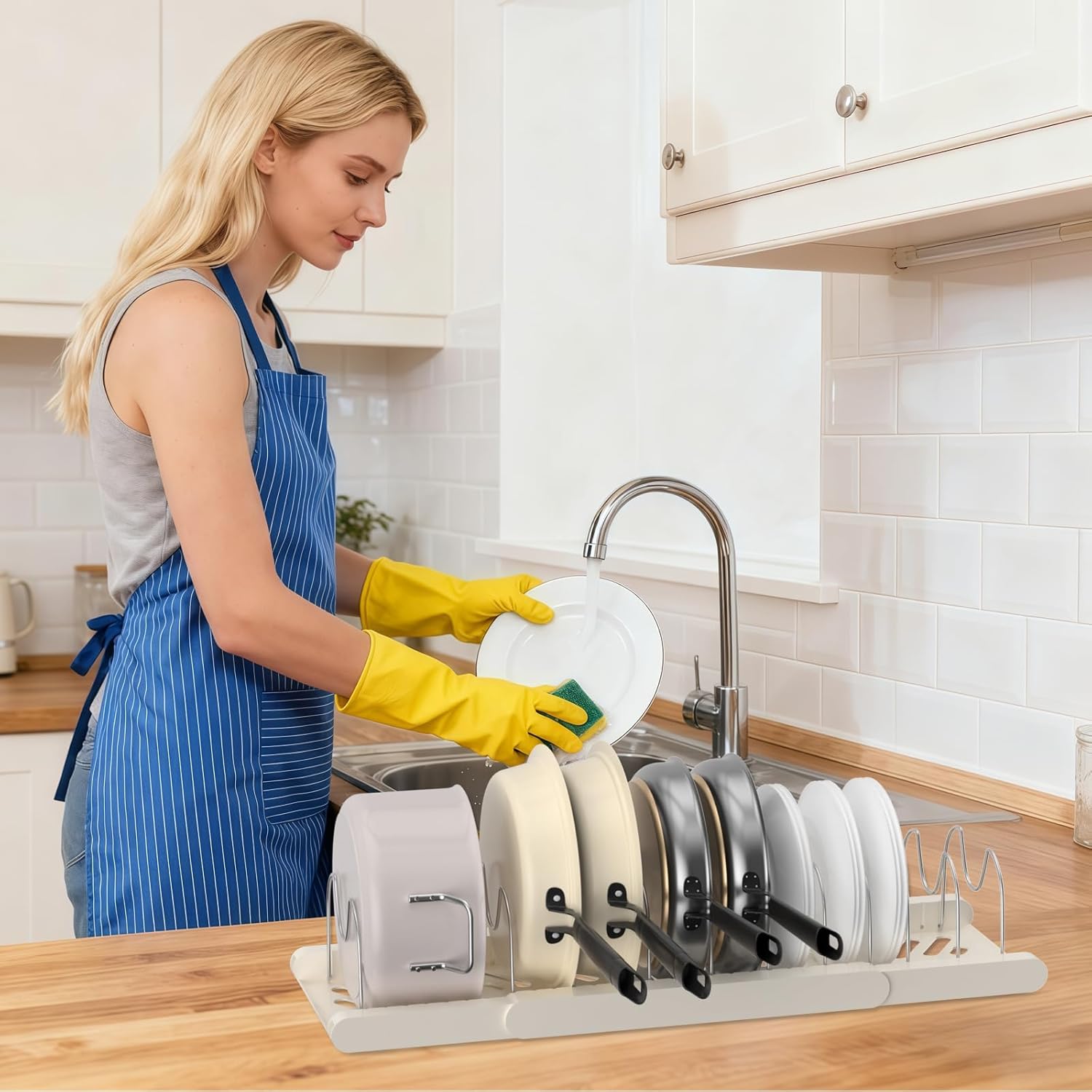 Pots and Pans Organizer Under Cabinet,Expandable Pot Lid Holder with 10 Adjustable Dividers,Pot Rack,Kitchen Pantry Countertop Storage for Bakeware, Cutting Boards, Frying, Lid, Cookware,Dishes