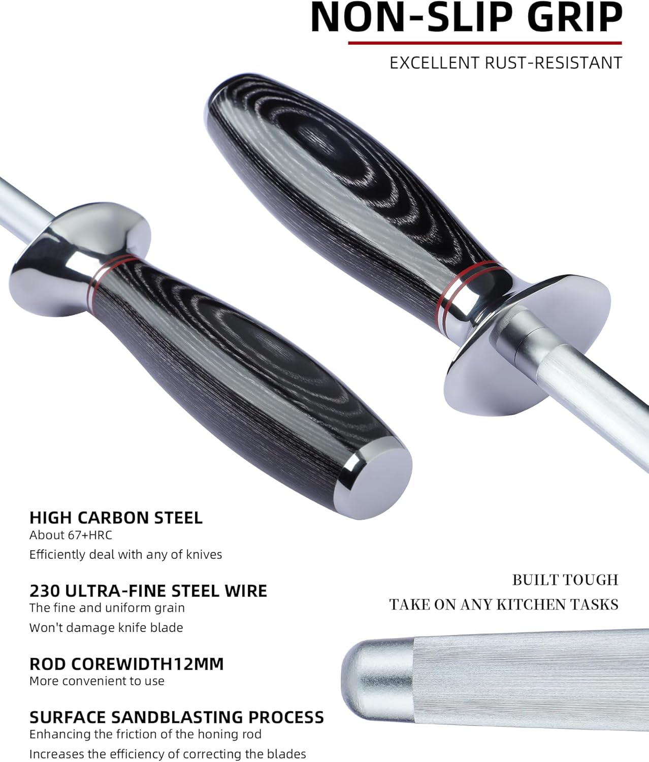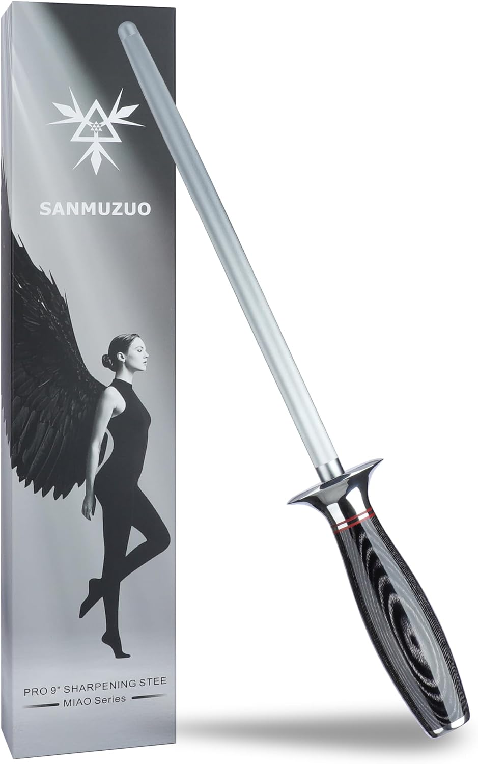 Honing Rod, Sharpening Steel for Kitchen Knives – 9" Honing Steel with Pakkawood Handle – MIAO Series