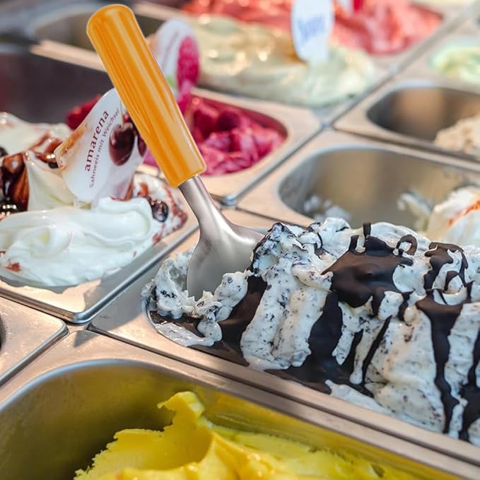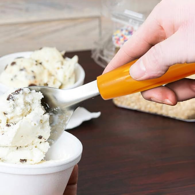 • DURABLE CONSTRUCTION: Sturdy stainless steel scoop head with sawtooth edge cuts through tough pulp while maintaining sharpness
