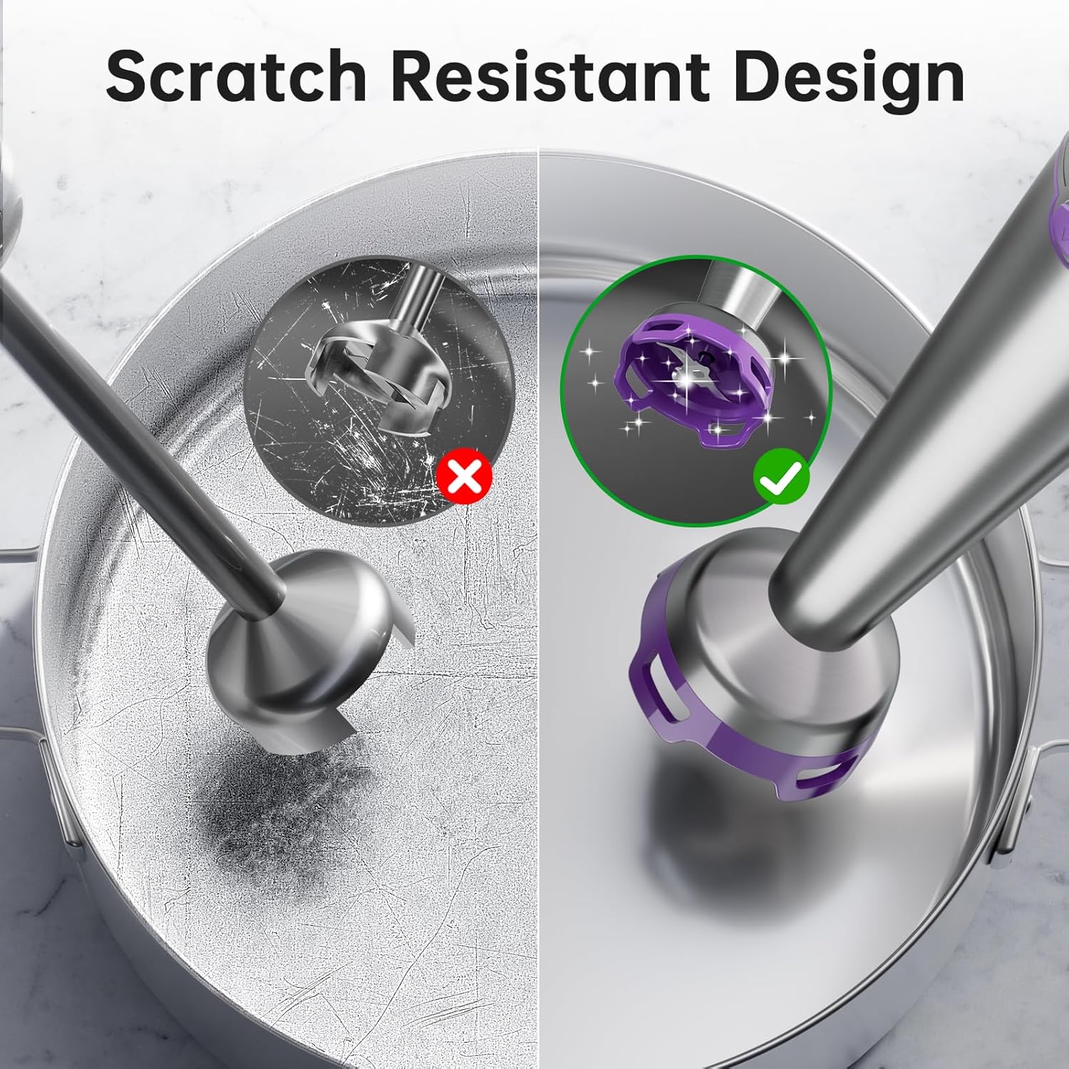 • Effortless Clean-Up, Scratch-Free: Features a unique food-grade nylon blade guard designed to minimize suction, preventing scratches on your pots and pans and keeping splashes at bay for a cleaner kitchen and hassle-free clean-up
