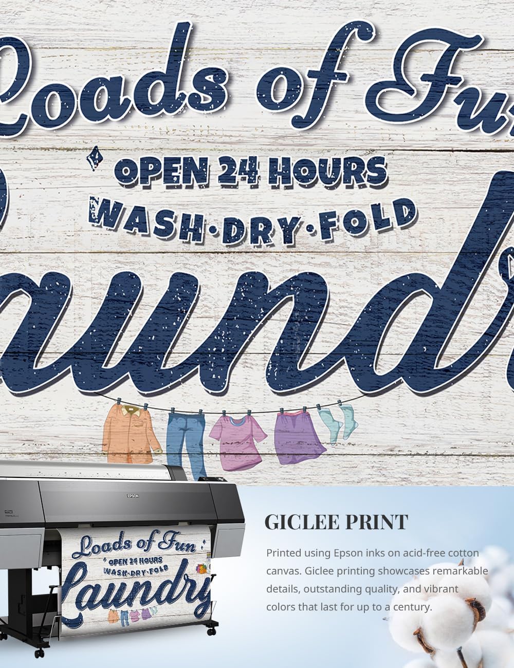 • Premium Quality & Craftsmanship: Our 24" x 12" laundry sign features Giclée printing technology on acid-free cotton canvas, ensuring archival-quality inks with fade-resistant colors. This durable handcrafted laundry room sign adds a touch of elegance to your laundry room wall decor.
