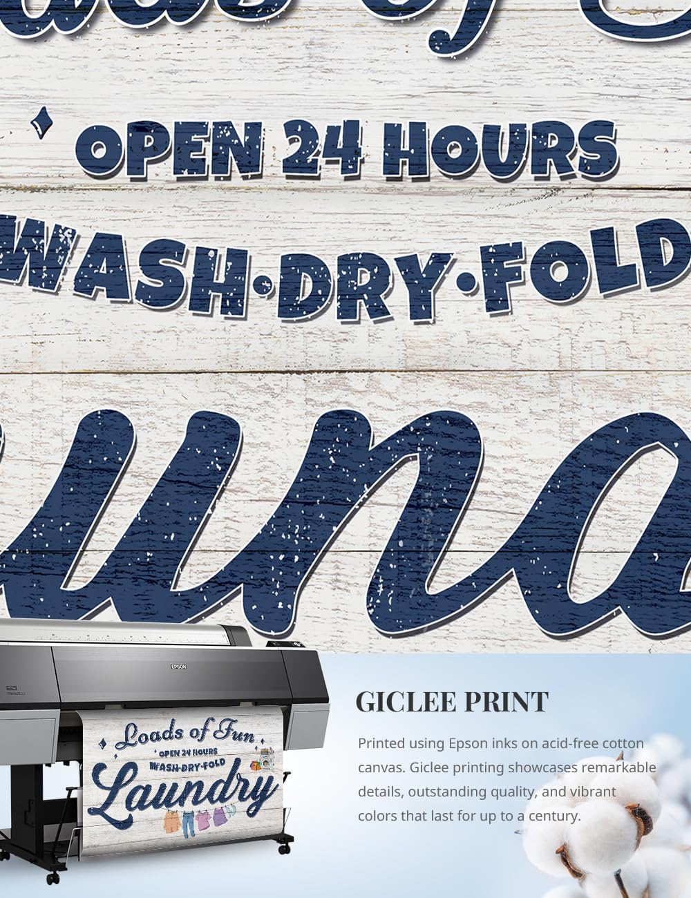 • Premium Quality & Craftsmanship: Our 36" x 24" laundry sign features Giclée printing technology on acid-free cotton canvas, ensuring archival-quality inks with fade-resistant colors. This durable handcrafted laundry room sign adds a touch of elegance to your laundry room wall decor.
