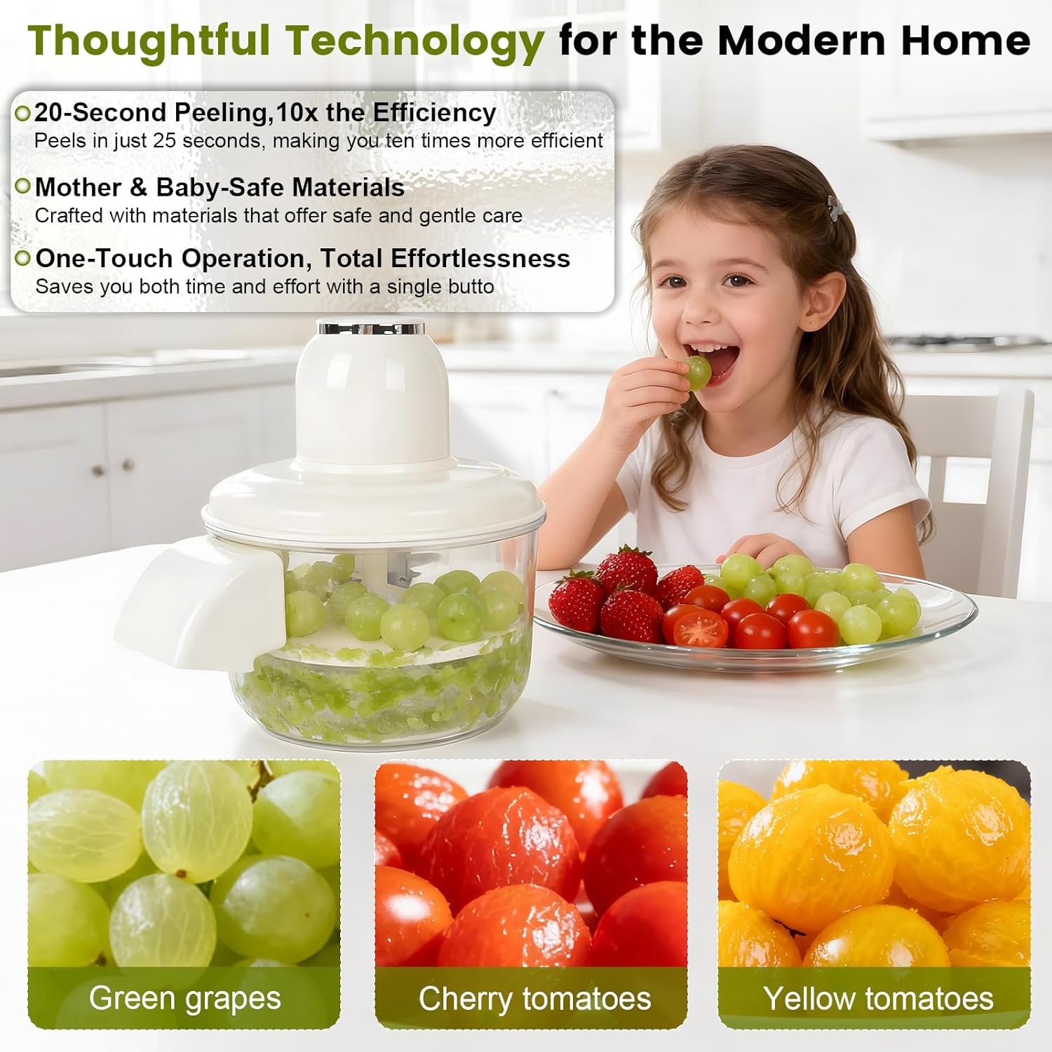 Automatic Grape Peeler Machine, Electric Garlic Peeler & Cherry Tomato Skin Remover Tool for Small Fruits, Efficient Peeling Kitchen Gadget for Home Use (White)