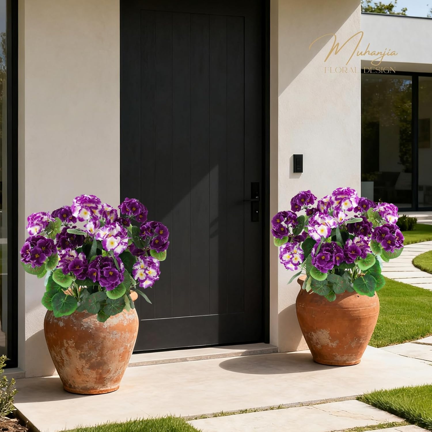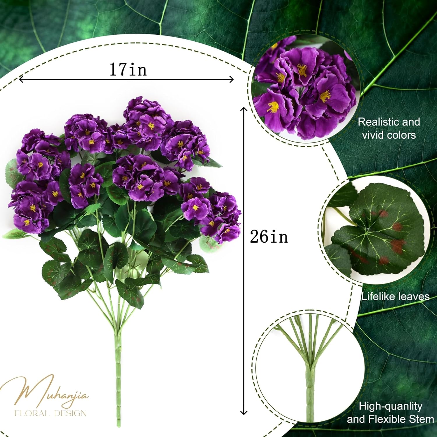• 💐【Lifelike Elegance with Dual-Tone Color】 Enjoy the lush, vibrant look of real geraniums with our incredibly detailed silk flowers. The set features both dark and light purple blooms, creating a beautiful, natural-looking color variation that adds depth and visual interest to any space.