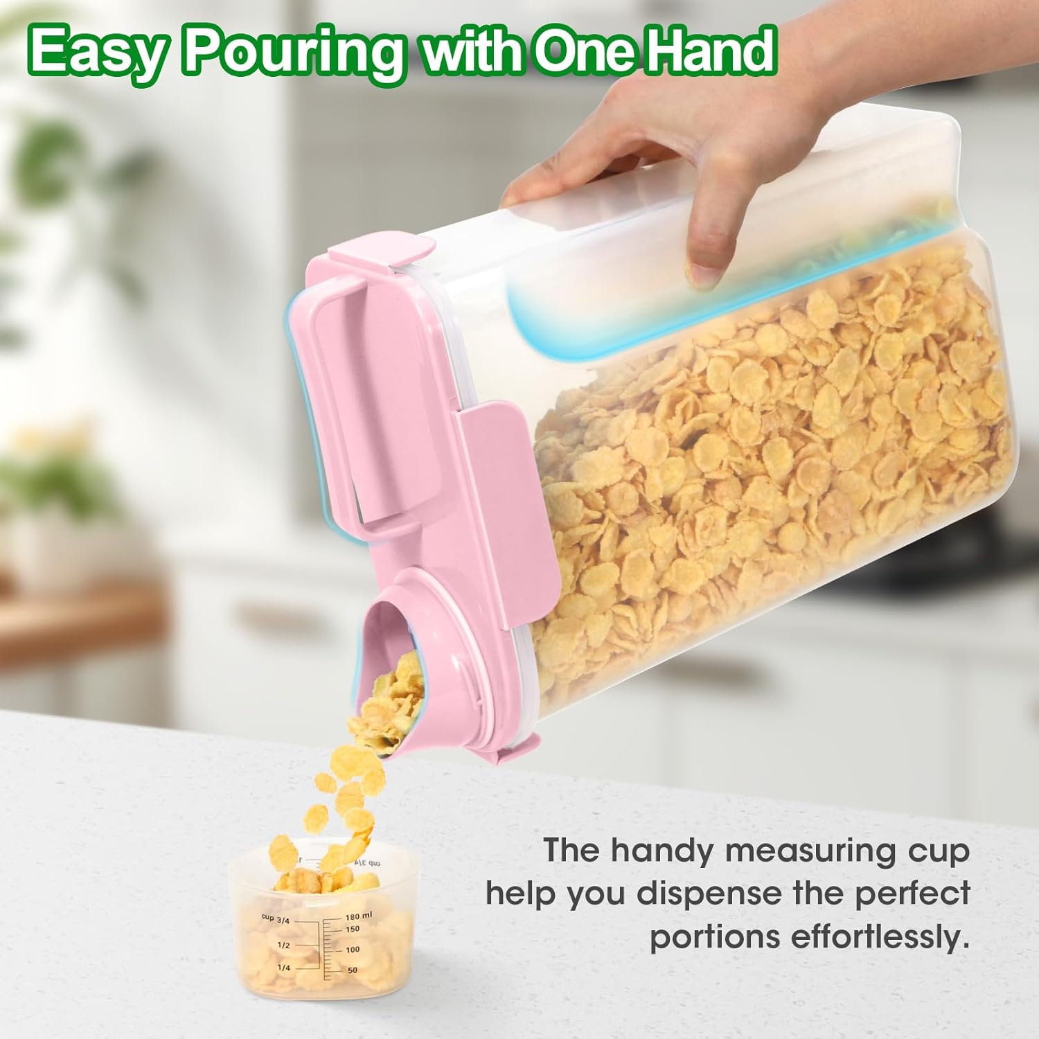 • MESS-FREE FOOD DISPENSER: The cereal storage container features a pouring spout makes it a breeze to dispense your ingredients. Its ergonomic design offers a comfortable grip for easy, single-handed pouring