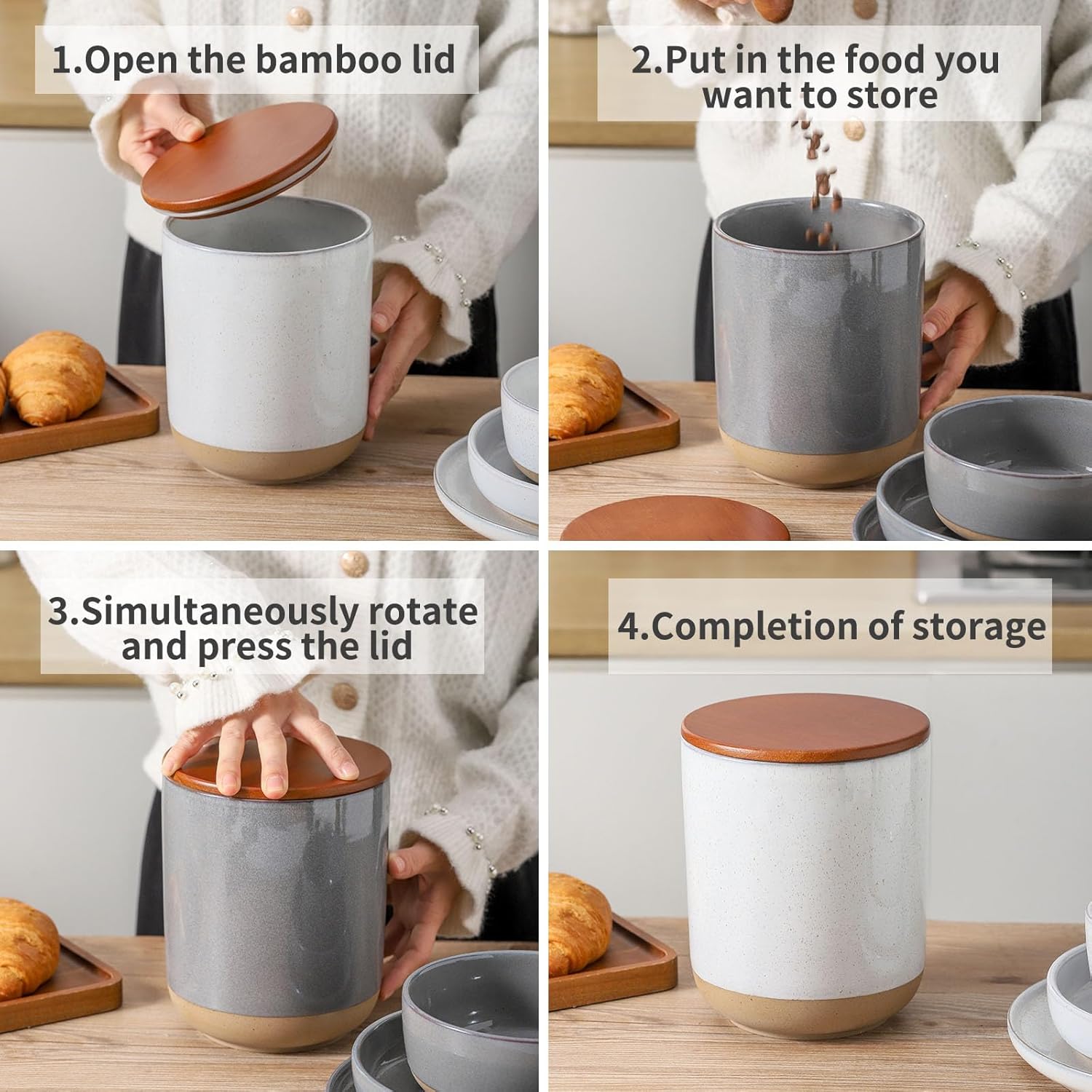 • Farmhouse Style Decorative Kitchen:Elegant and sophisticated, the Tikooere Food Storage Jar's farmhouse style colorblocking design is both functional and beautiful. Whether placed in the cabinet or on the countertop, it can add a unique decoration to the kitchen space.