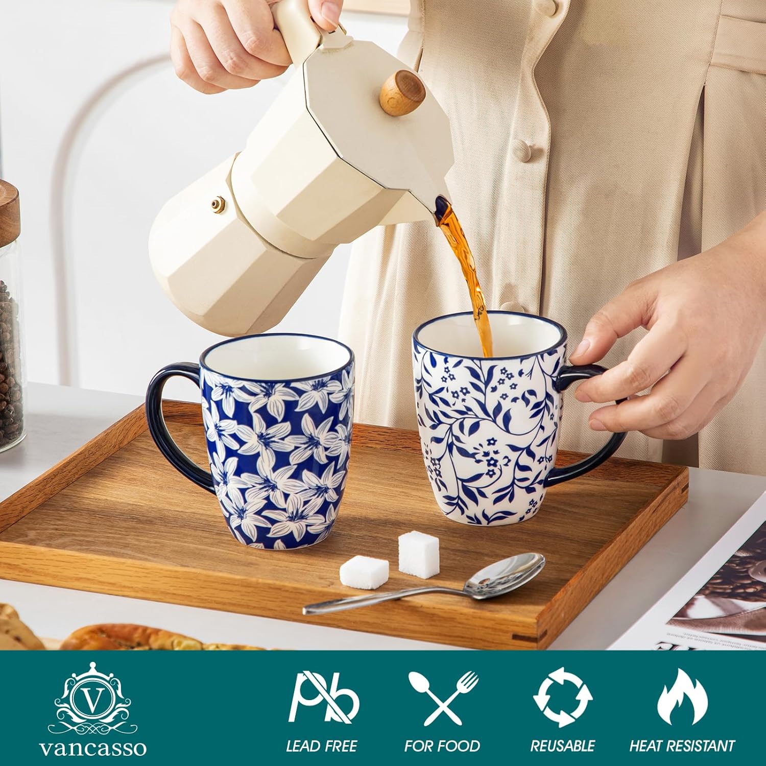 vancasso SELENE Coffee Mugs Set of 6, 12 Oz Porcelain Coffee Cups with Handle, Ceramic Tea Cup for Cappuccino, Latte, Tea, Cocoa, Dishwasher & Microwave Safe Gift Sets, Vintage Blue