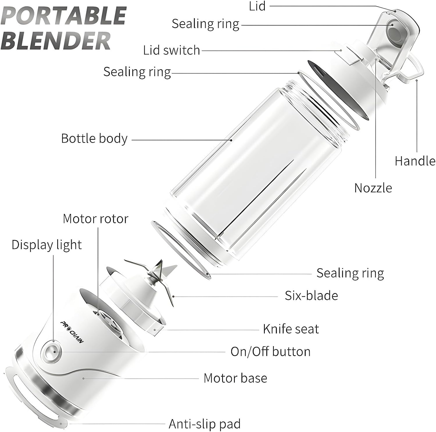 PROCHAIN Portable Blender, 22oz Cordless Personal Blenders, Electric USB Rechargeable Juicer, Smoothies, Ice Crush, Travel, Protein Shakes Cup, BPA-Free, Dishwasher Safe