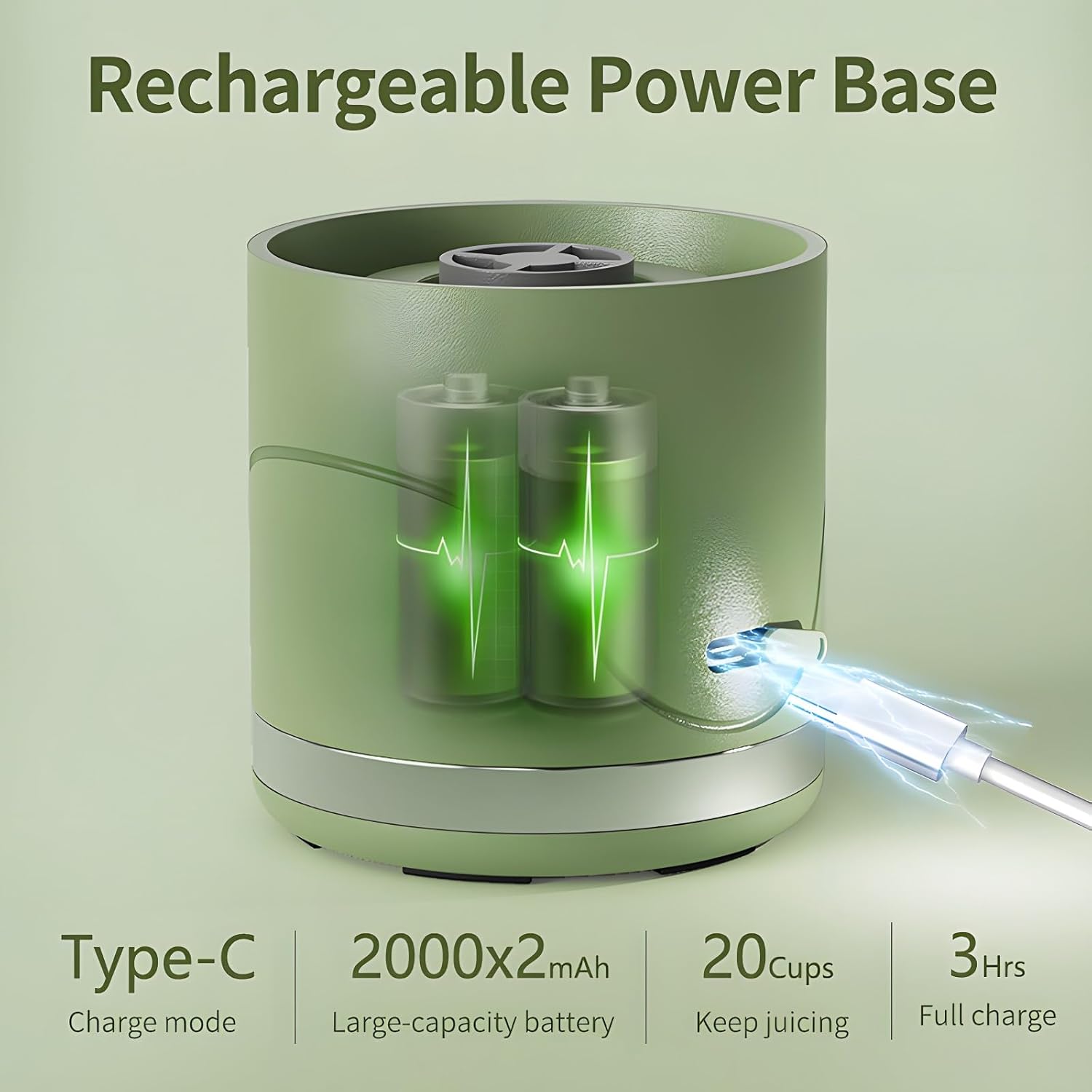 • 20 Uses Per Charge: 2000mAh*2 batteries deliver 20 blends per charge, with 3-hour USB-C fast charging. Cordless design for effortless blending anytime.