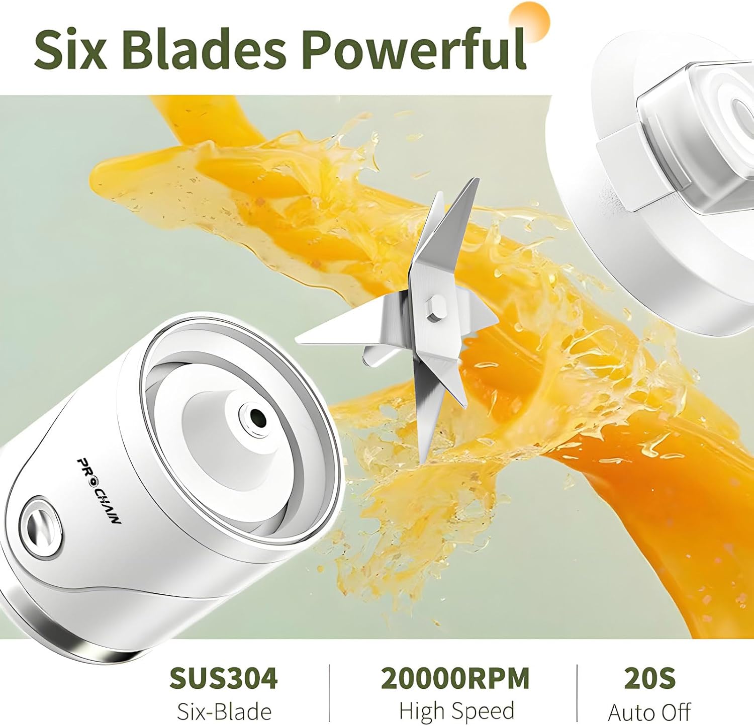• Powerful Crushing: Equipped with a 20000rpm motor and 304 stainless steel 6-blade cutter, this Portable Blender easily crushes ice, frozen fruits, and vegetables—perfect for Smoothies, fresh juice, Protein Shakes, and homemade Juices.