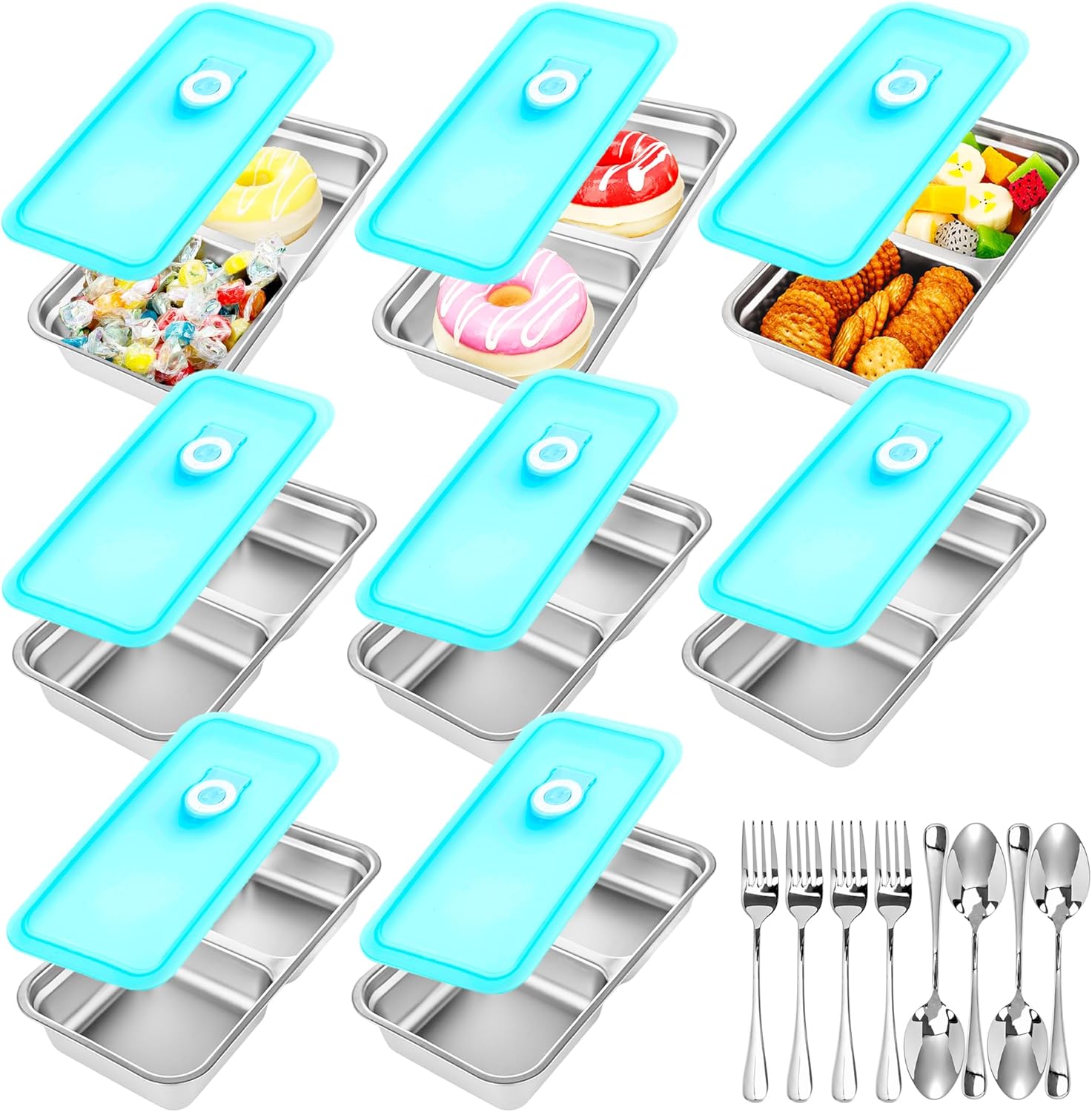 • ✅What You Can Get: you will receive 8 304 double compartment snack containers, 4 stainless steel spoons and 4 stainless steel forks, which are enough for your daily replacement use. You can also share them with friends when you have a meal or go out for an outing