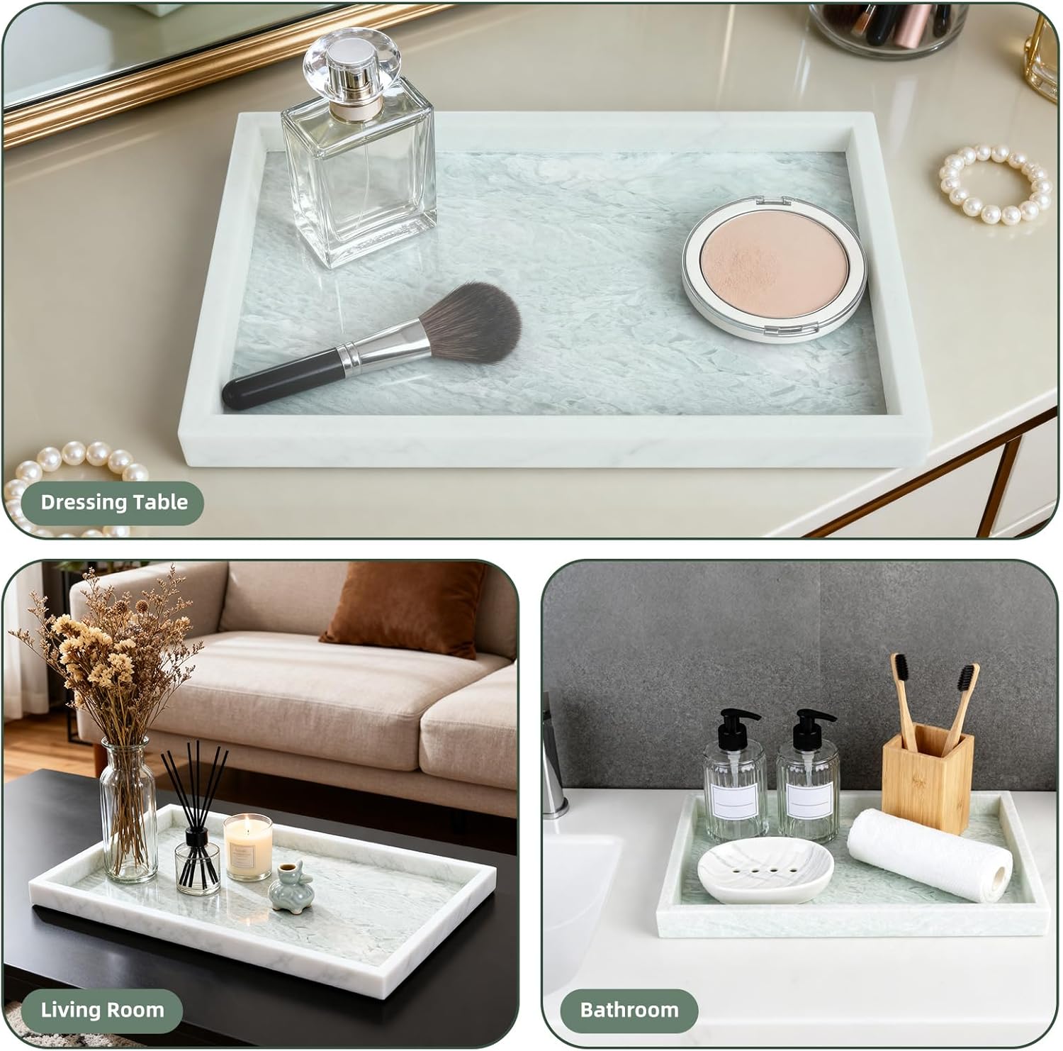 • 【VERSATILITY】- Perfect luxury stone tray for cosmetics, scented candles, jewelry, soap bottles, key trinket, beauty products, plants, food and more. Widely used in bathroom vanity, dressing table, toilet, wash basin, living room, bedside table, kitchen and etc