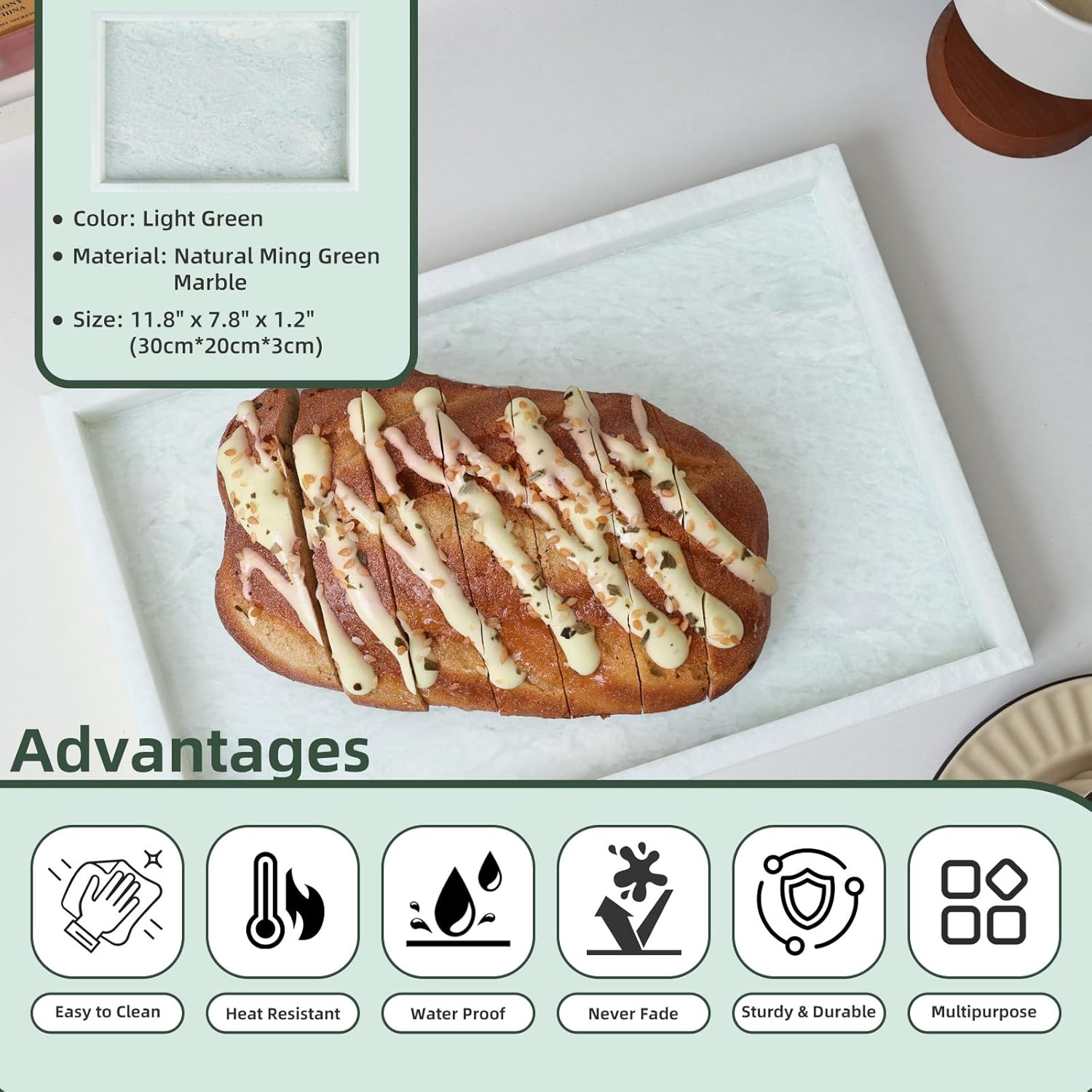 • 【NATURAL MARBLE】- Made of natural Ming Green Marble. The overall color is natural jade-like light green. The veins of each marble tray are unique. Non-resin, non-ceramic