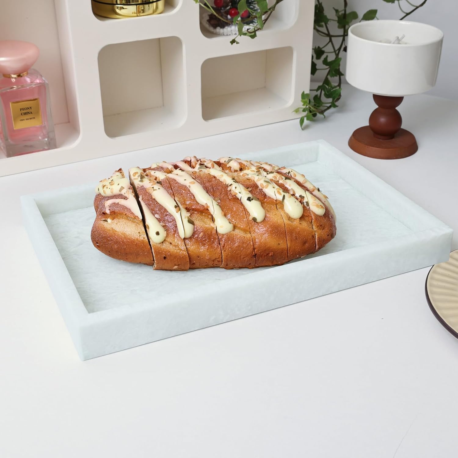• 【IDEAL SIZE】- 11.8” x 7.8” x 1.2". The bottom of the marble tray is equipped with non-slip rubber feet pad to prevent the serving tray from sliding around