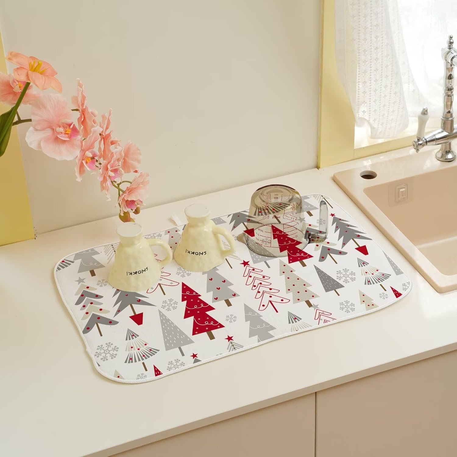 • Absorbent: Geometric colorful christmas tree decorative dish drying mats for kitchen counter surface is a super absorbent microfiber and the middle is a composite sponge that can absorb water