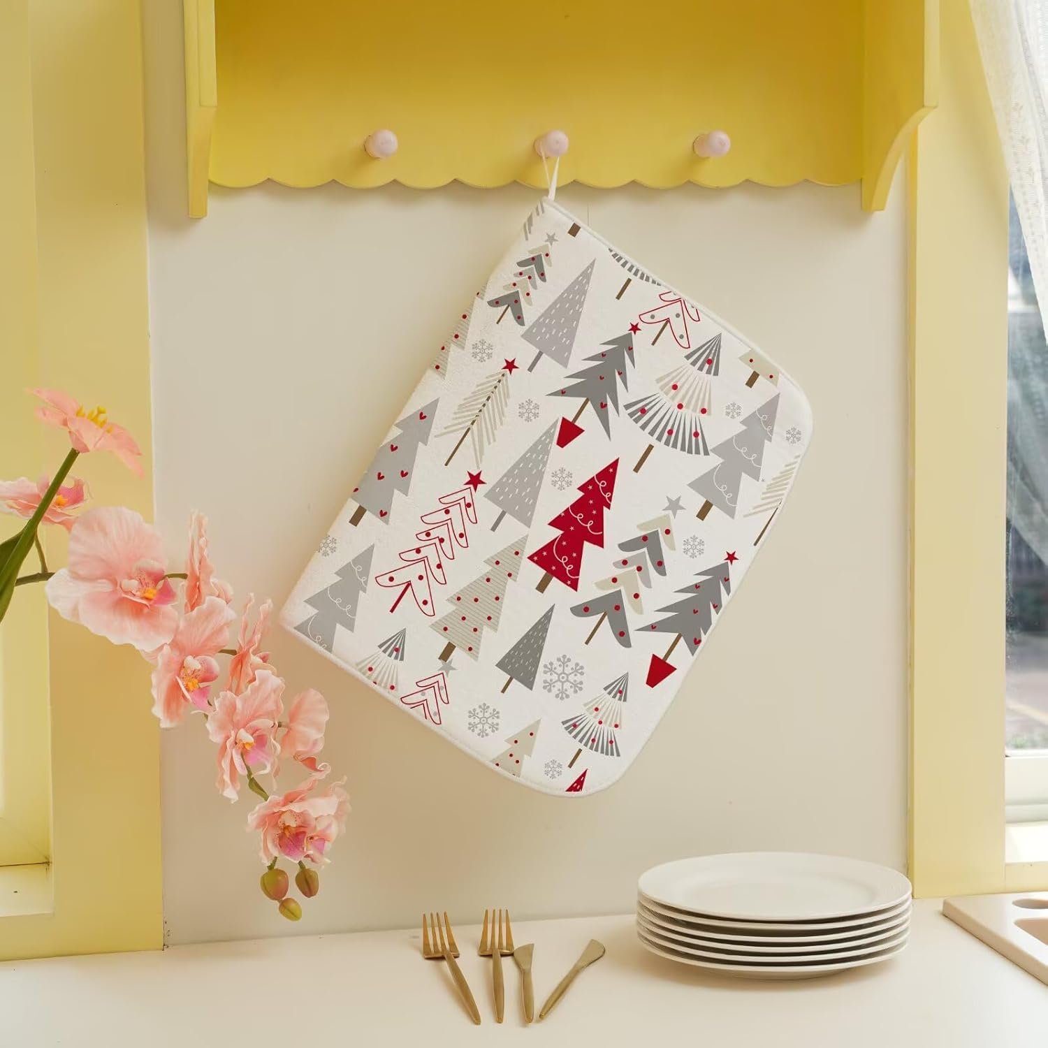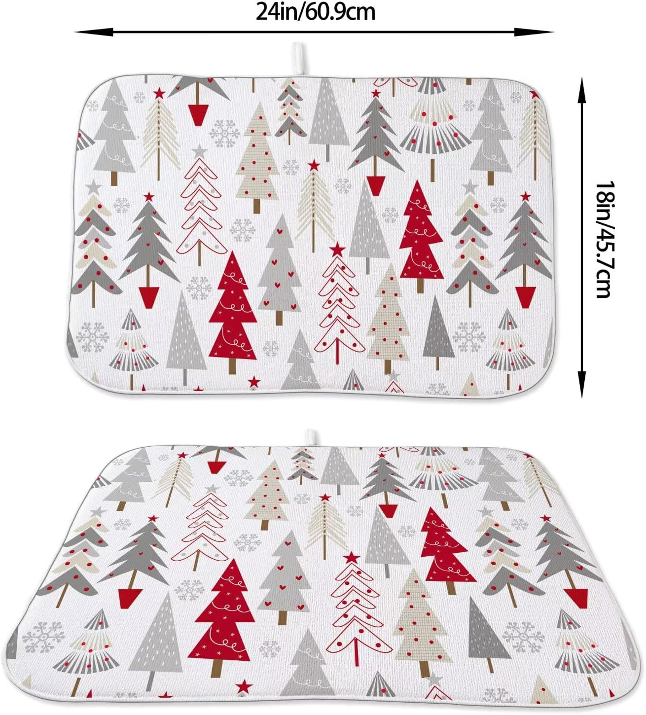 Christmas Decor Dish Drying Mat 18 x 24 inch Geometric Colorful Christmas Tree Pine Trees Decorative Drying Mats Microfiber Absorbent Dish Washable Draining Mat for Kitchen Counter