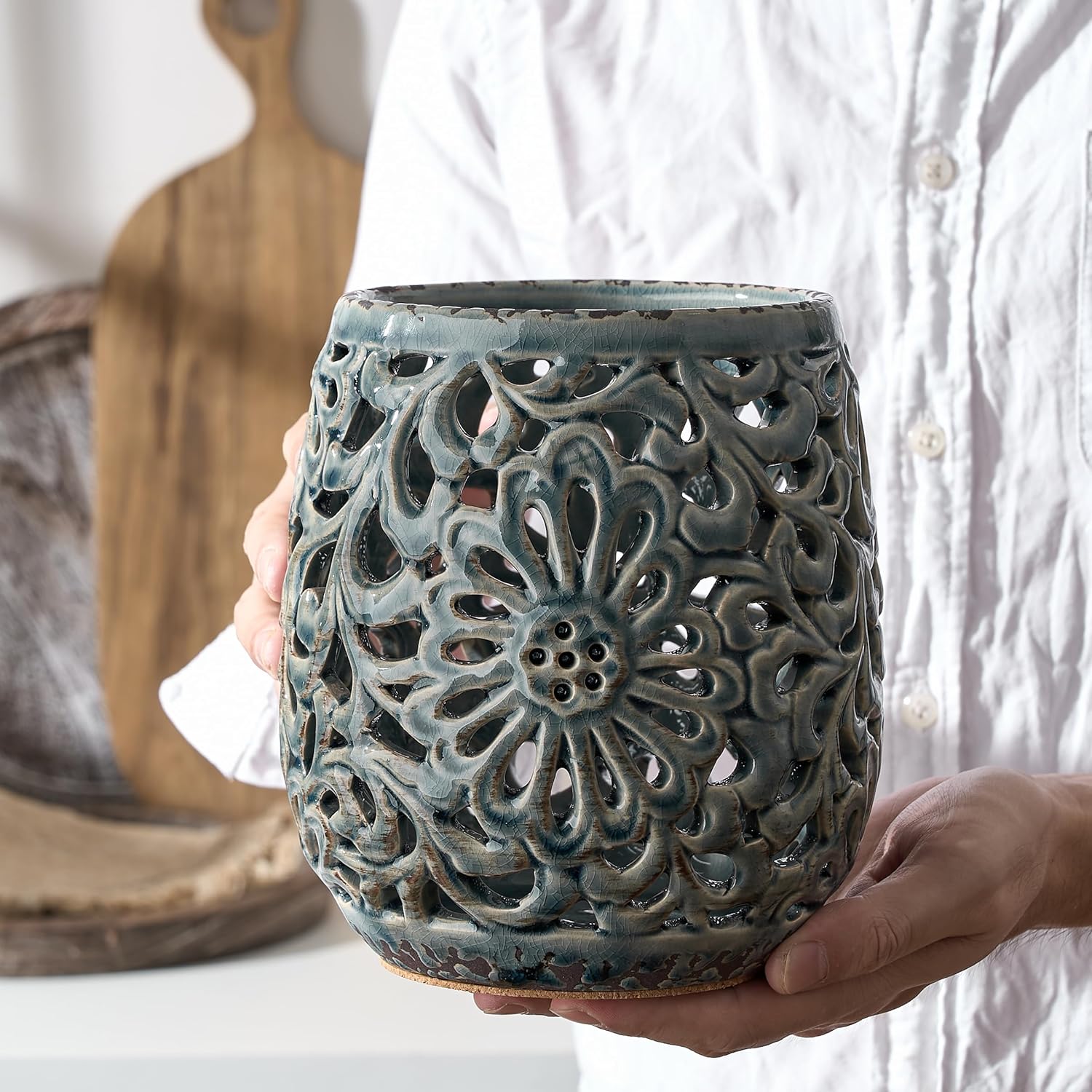• 𝐕𝐢𝐧𝐭𝐚𝐠𝐞 𝐅𝐚𝐫𝐦𝐡𝐨𝐮𝐬𝐞 𝐂𝐨𝐮𝐧𝐭𝐫𝐲 𝐊𝐢𝐭𝐜𝐡𝐞𝐧 𝐃𝐞𝐜𝐨𝐫 : Add a vintage touch to your home decor with this vintage farmhouse utensil holder. This classic grayish blue utensil jar can match many household style and make a beautiful decoration for your kitchen countertop and home.