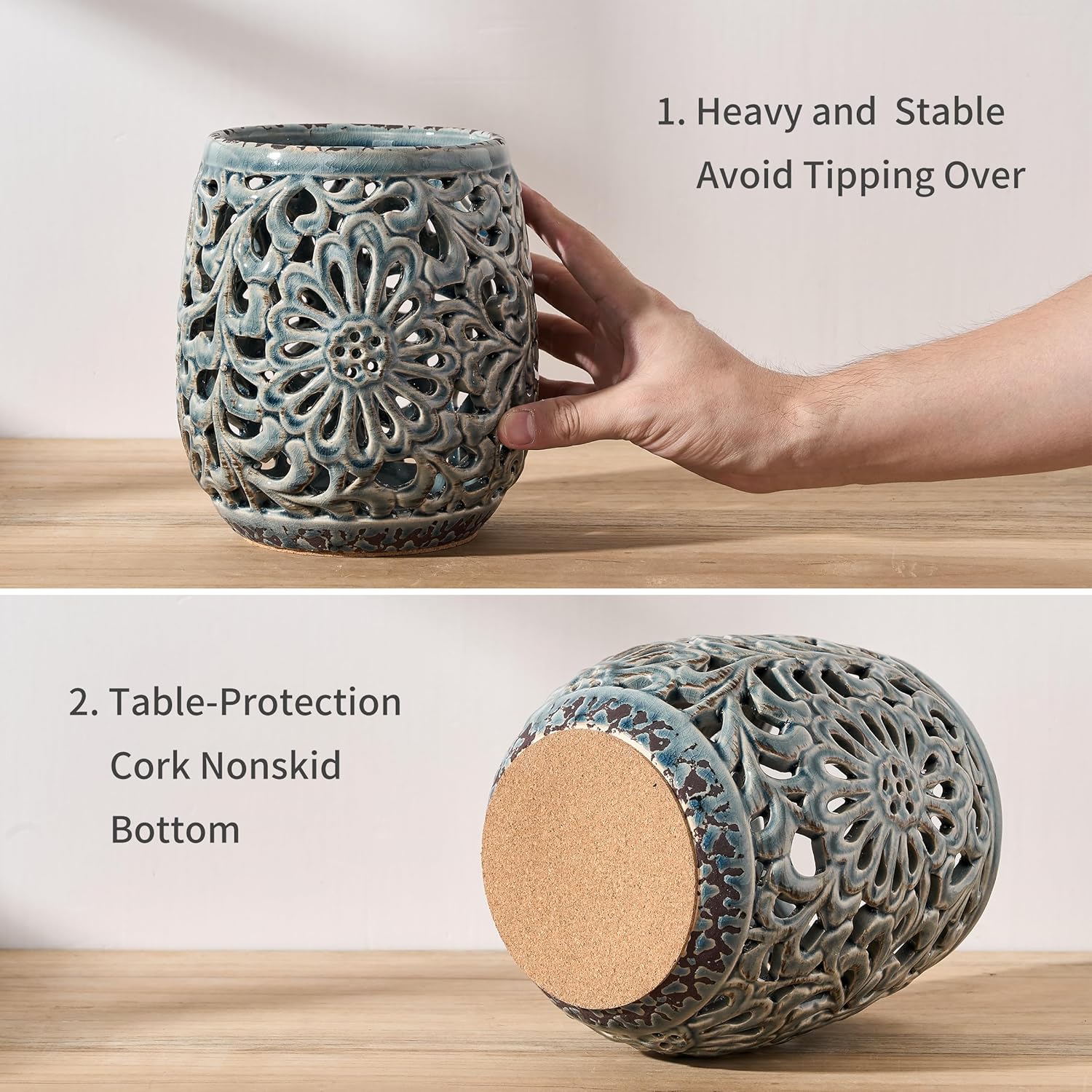 • 𝐂𝐨𝐮𝐧𝐭𝐞𝐫 𝐏𝐫𝐨𝐭𝐞𝐜𝐭𝐢𝐨𝐧 𝐂𝐨𝐫𝐤 𝐌𝐚𝐭: The special cork mat at the bottom of this grayish blue ceramic utensil crock prevents your table or countertop from scratching.