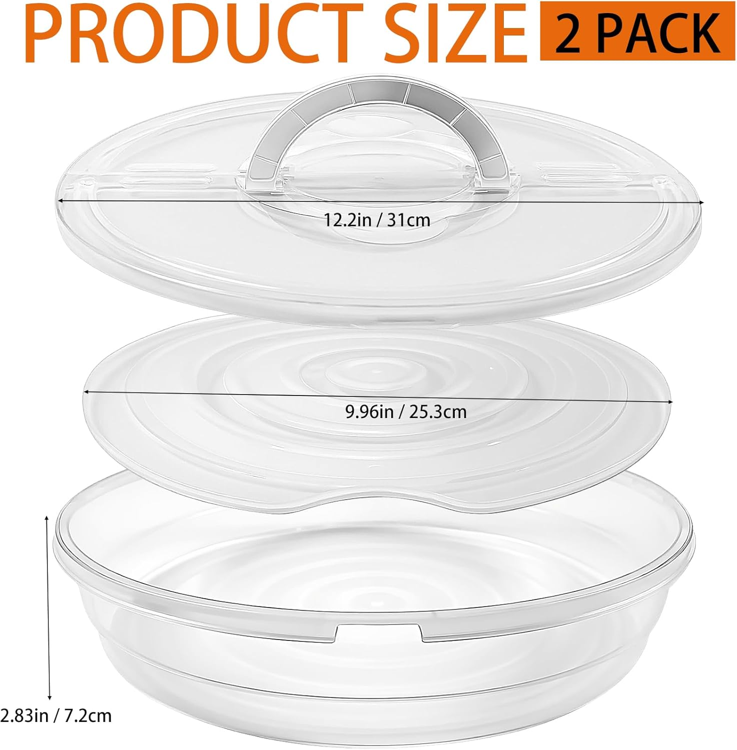 2 Pack 12 Inch Food Storage Container with Lid and Handle, Round Plastic Pizza Slice Storage Container, Reusable Pie Carrier Keeper for Food Cake Cheesecake, Clear